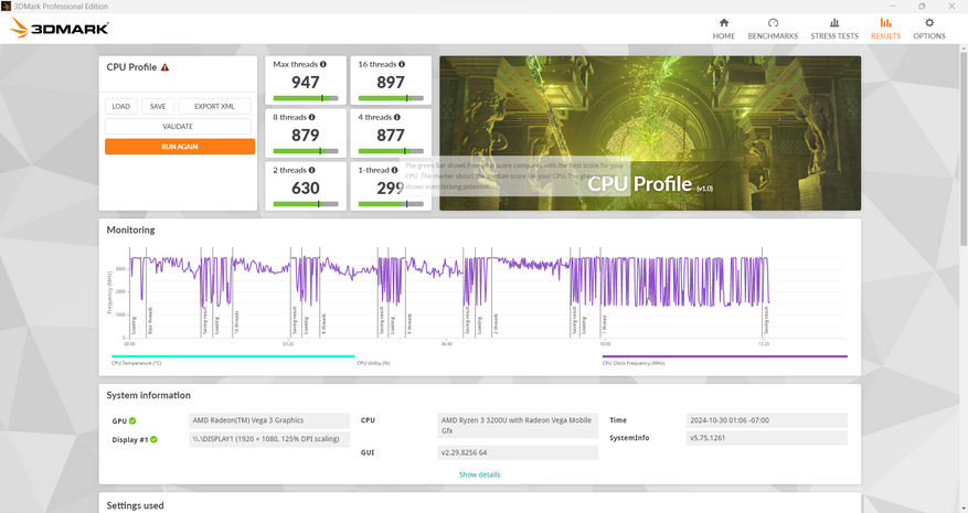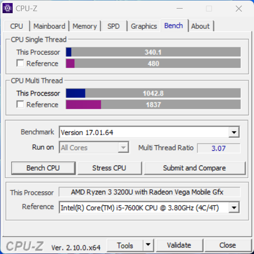 - CPU: AMD Ryzen 3 3200U (2 ядер, 4 потоков)