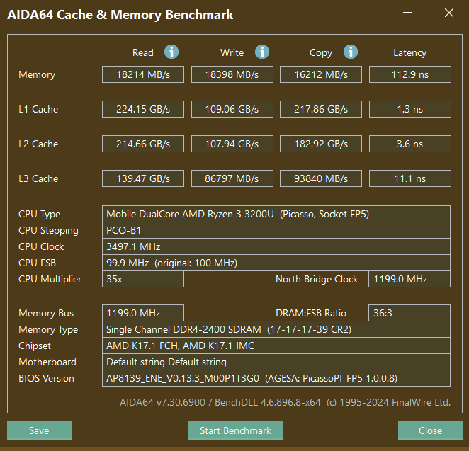 Ну и раз у нас запущена AIDA, запущу заодно и тест ОЗУ