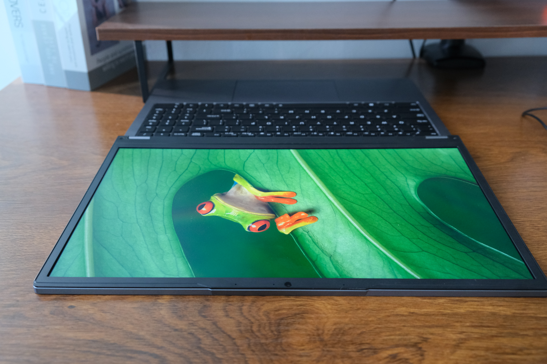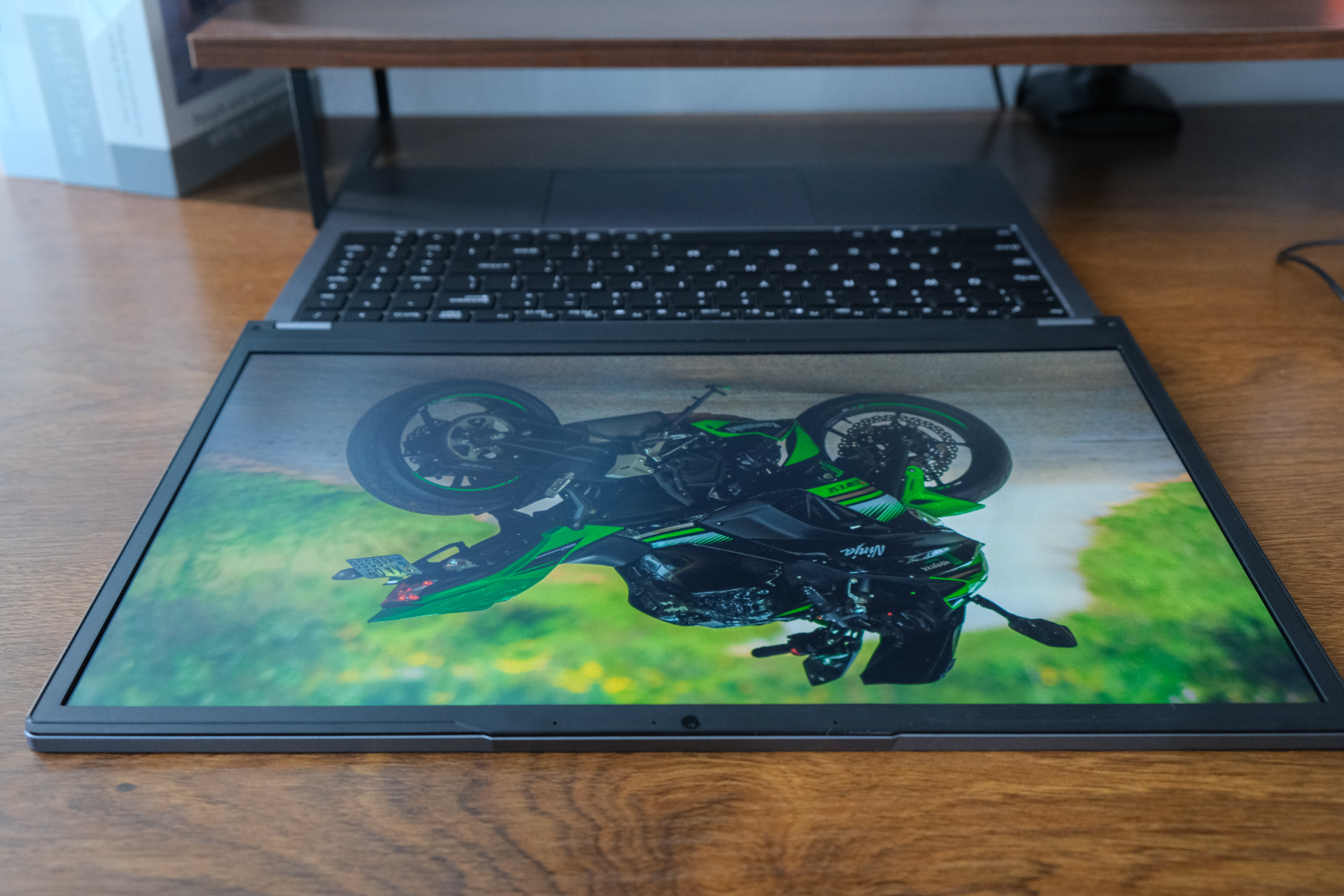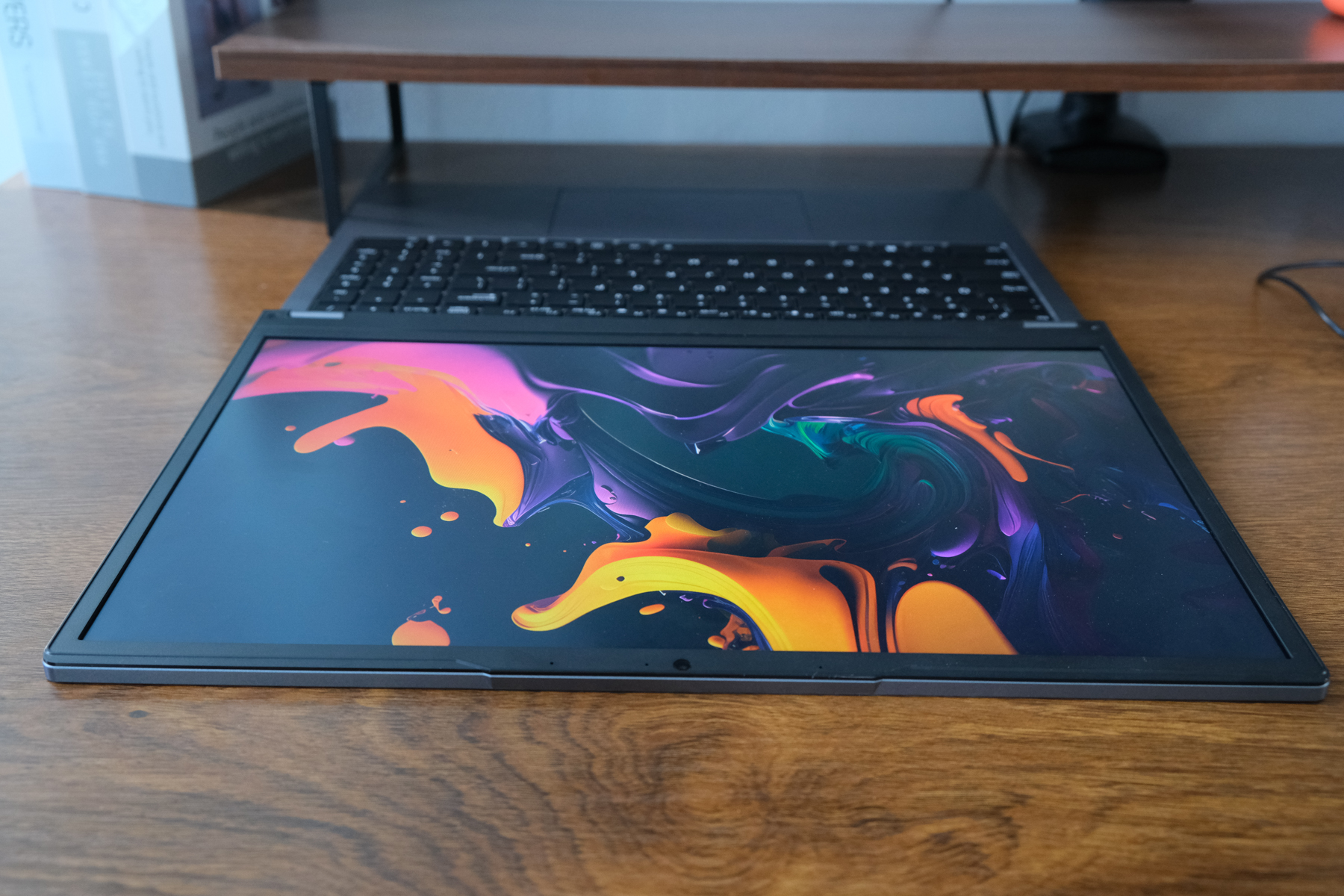 То есть просто открываем ноутбук на 360 градусов и перед нами большой планшет на Windows с 15.6 экраном. Естественно тут есть датчик положения, и исходя из ориентации, экран автоматически поворачивается. Очень удобная реализация, и например если вы вне помещения, но нужно срочно посмотреть какой-либо документ, это можно сделать буквально сидя на ступеньках где угодно.
