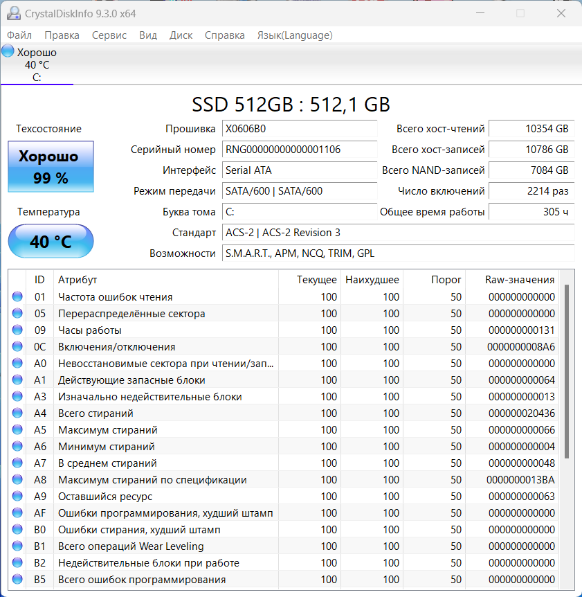 Собственно CrystalDiskInfo нам и показывает, что здесь используется интерфейс Sata/600. Естественно имеется TRIM.