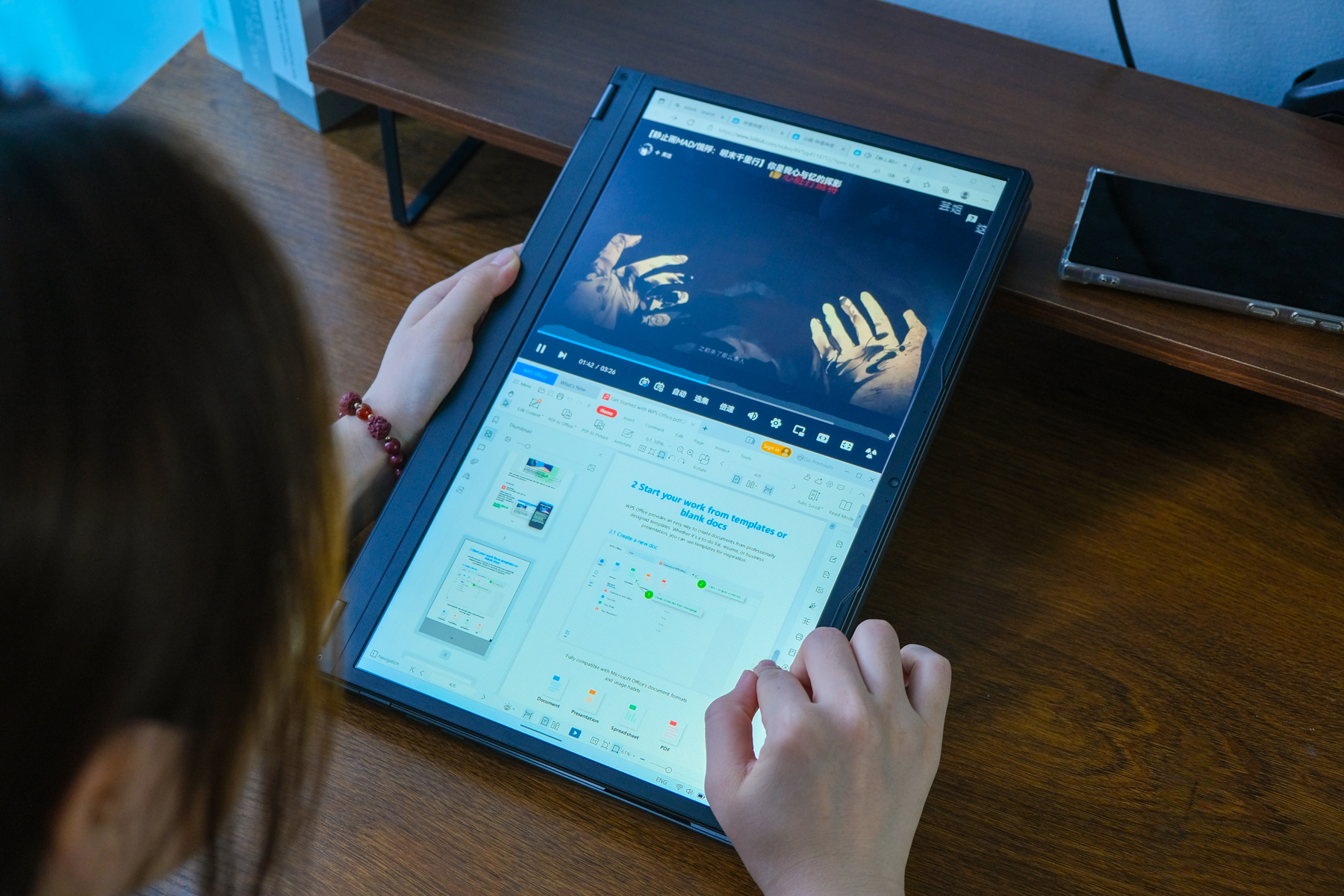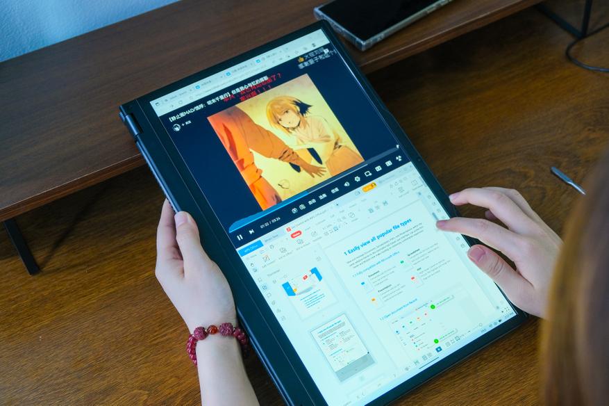 А можно использовать как обычный планшет, причём как в вертикальном, так и горизонтальном отображении. Кстати если использовать горизонтальное, то удобно делать два окна одно над другим. В одном можно смотреть видео, а в другом работать с документами или листать браузер