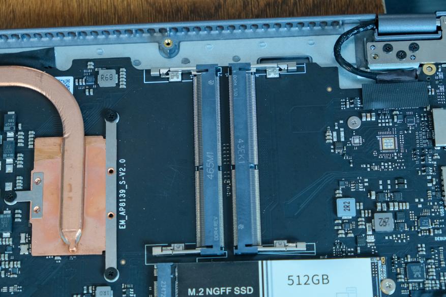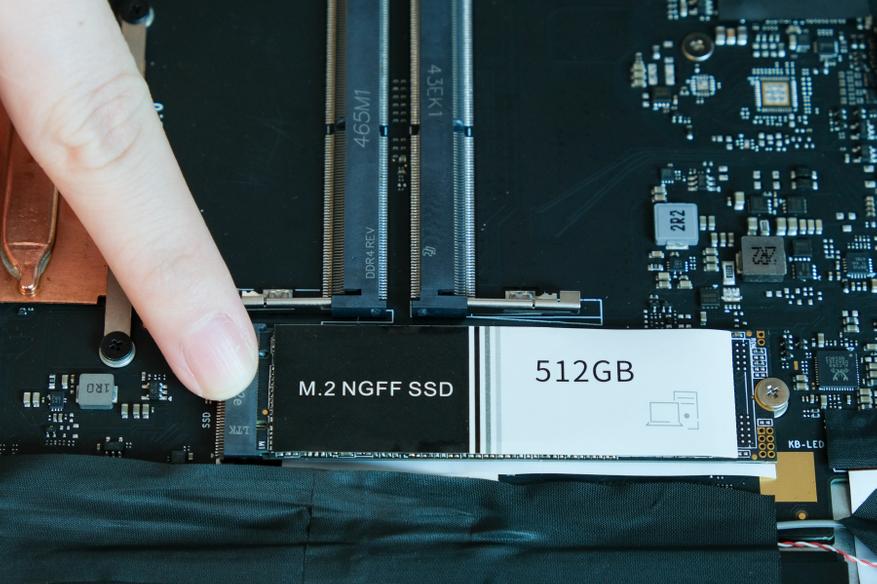 В качестве накопителя информации выступает SSD M2 объёмом 512gb с интерфейсом Sata (ставить быстрый NVMe тут не имеет смысла)