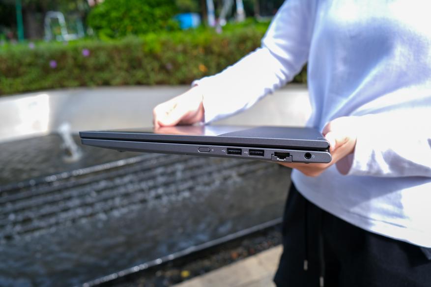 Что касается портов, то здесь, так сказать, джентльменский набор присутствует. Слева находятся один порт USB Type A 3.2, порт HDMi, порт Type-c (только передача данных) и порт DC для зарядки