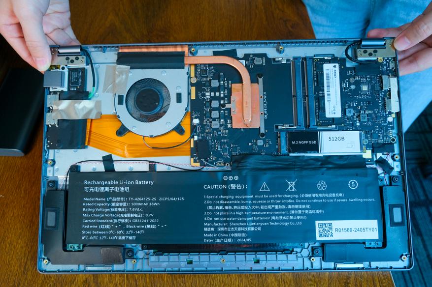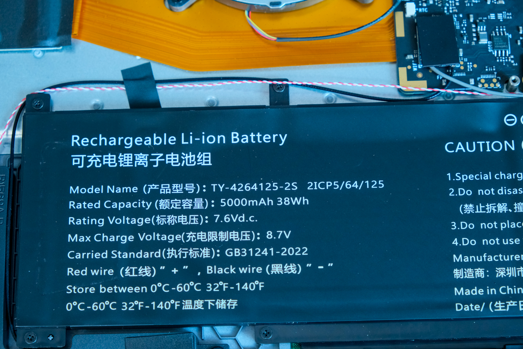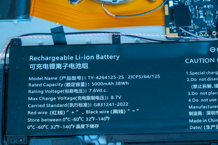 Основное пространство занимает батарея на 5000mAh 38Wh, производства Shenzhen Lijietianyuan Technology Co., Ltd