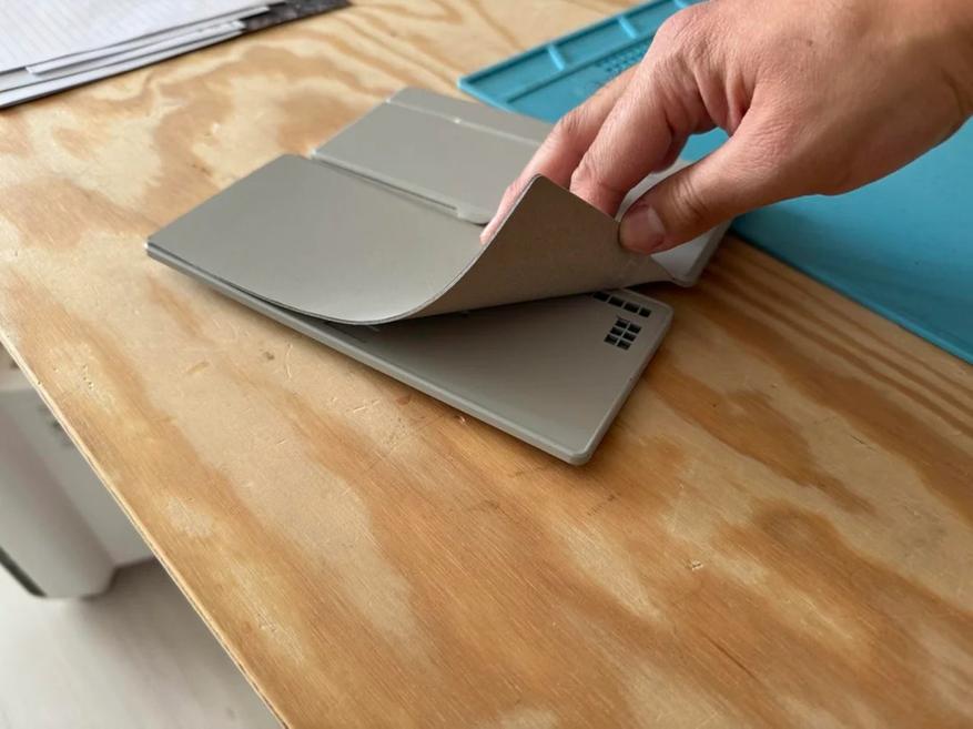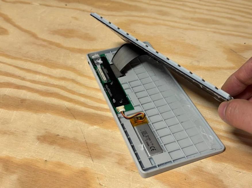 Для создания проекта автор разобрал клавиатуру CACOE, которая изначально поставлялась в чехле из искусственной кожи. Производитель нагрел чехол феном и отделил плату клавиатуры. BOOX Palma разместили в верхней части конструкции, а клавиатуру — в нижней. Обе половины соединяются латунными петлями, что позволяет складывать устройство как книгу.