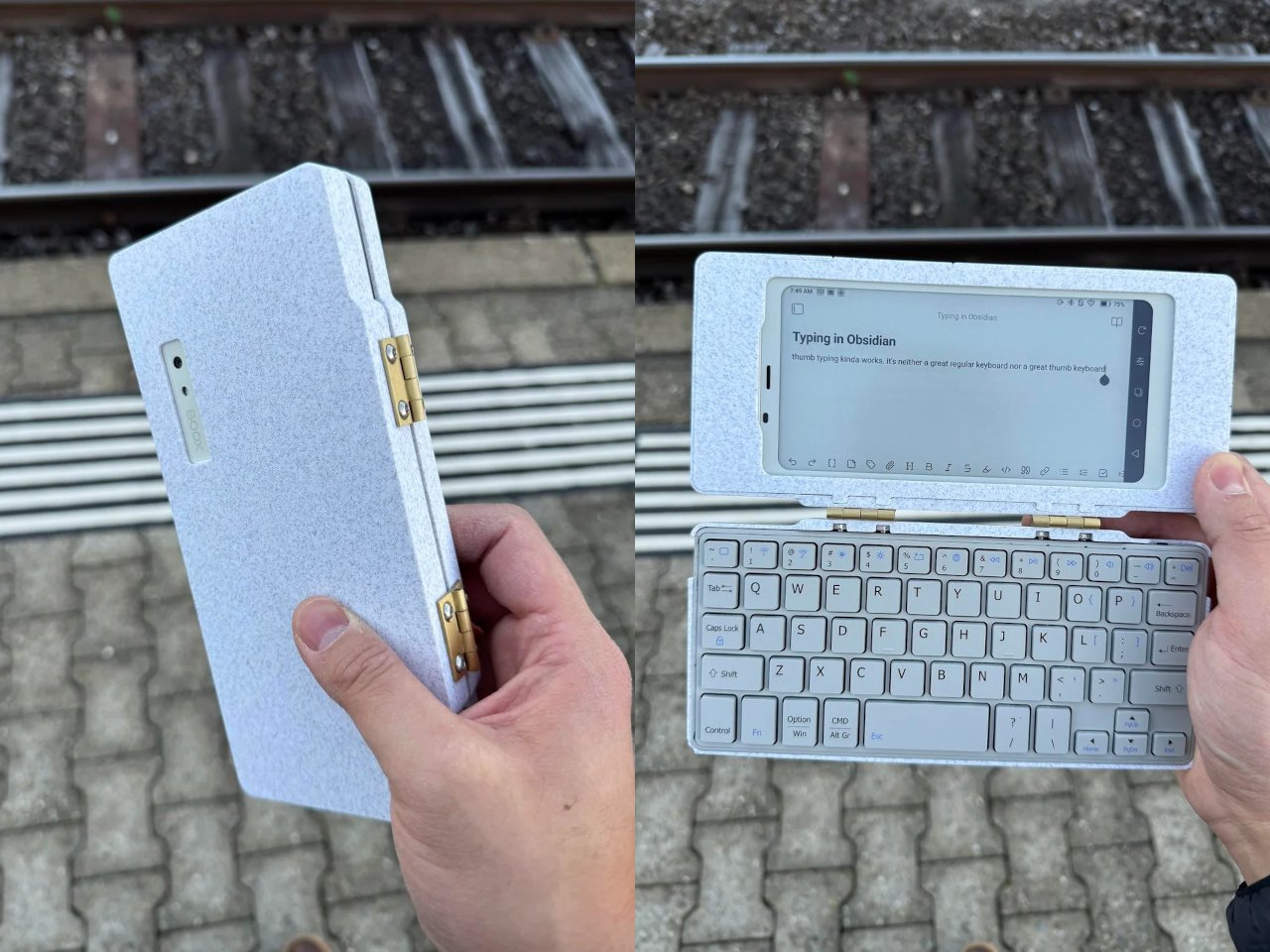 Пользователь Reddit с ником CommonKingfisher опубликовал проект самодельного портативного компьютера Palm(a)top Computer v0. Устройство представляет собой комбинацию Android-смартфона с экраном e-ink BOOX Palma, компактной Bluetooth-клавиатуры CACOE и раскладного корпуса, напечатанного на 3D-принтере.