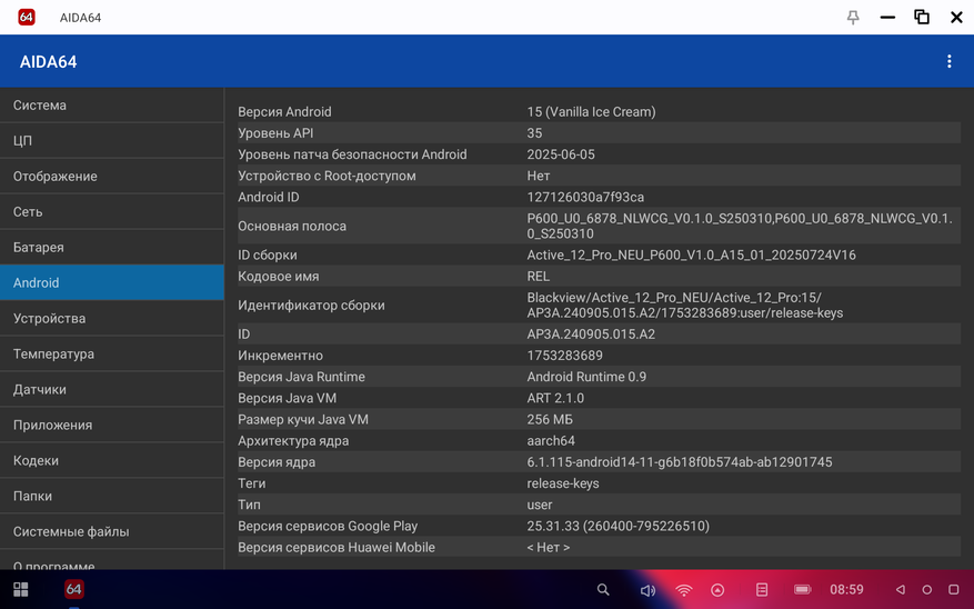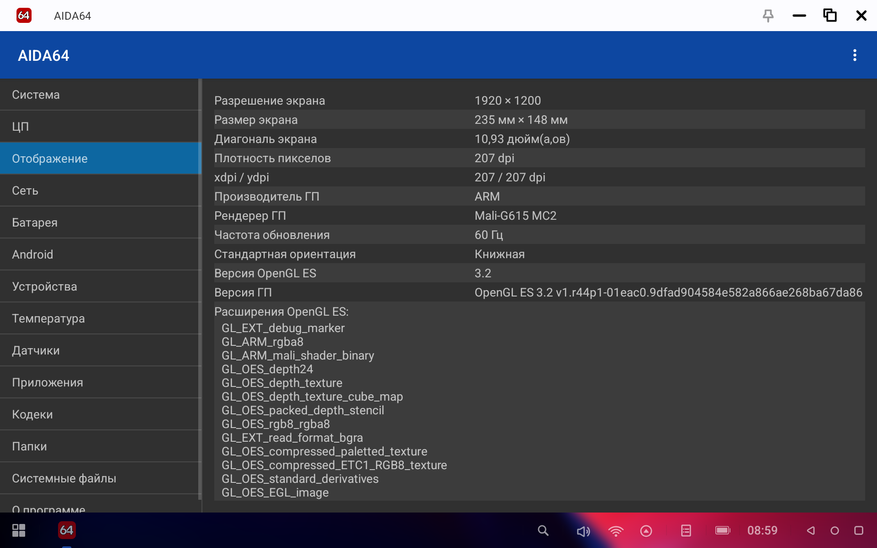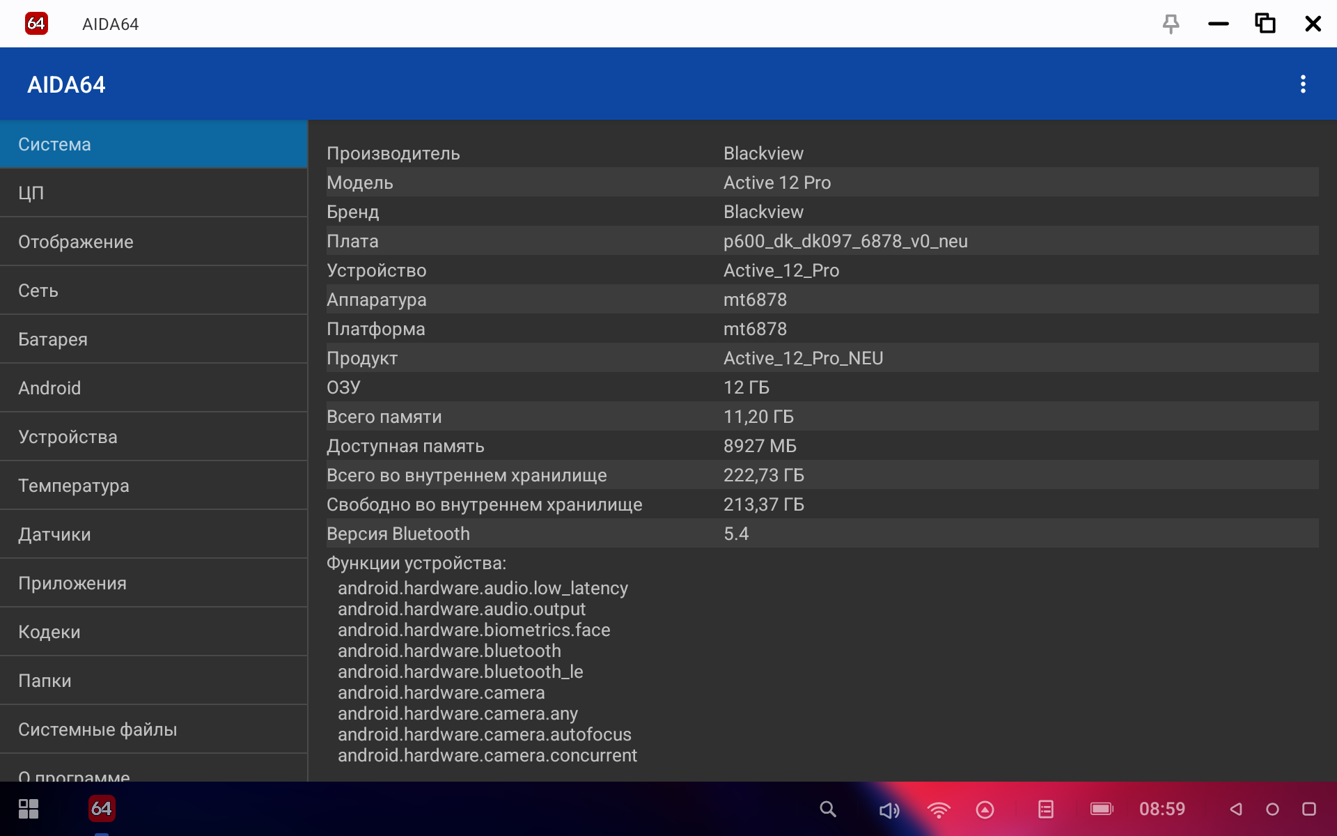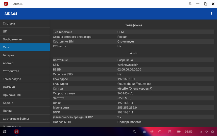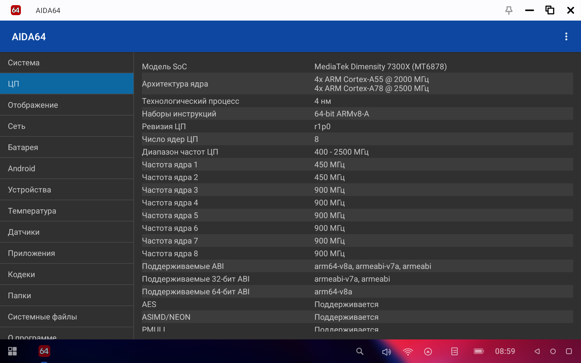 В AIDA64 устройство прошло проверку и полное подтверждение всех заявленных параметров железа.