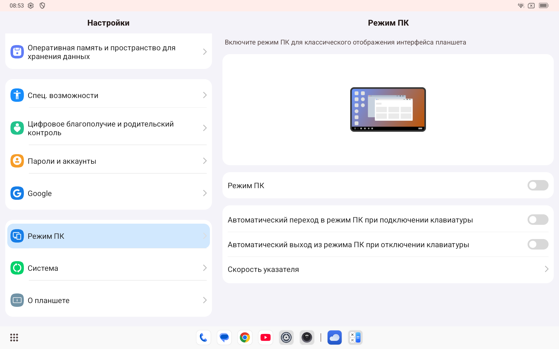 Режим ПК — опция интересная. Удобно пользоваться системой при помощи оконного расположения программ. Особенно учитывая, что в планшете предустановлены различные фото и видеоредакторы при помощи нейросетей и ИИ.