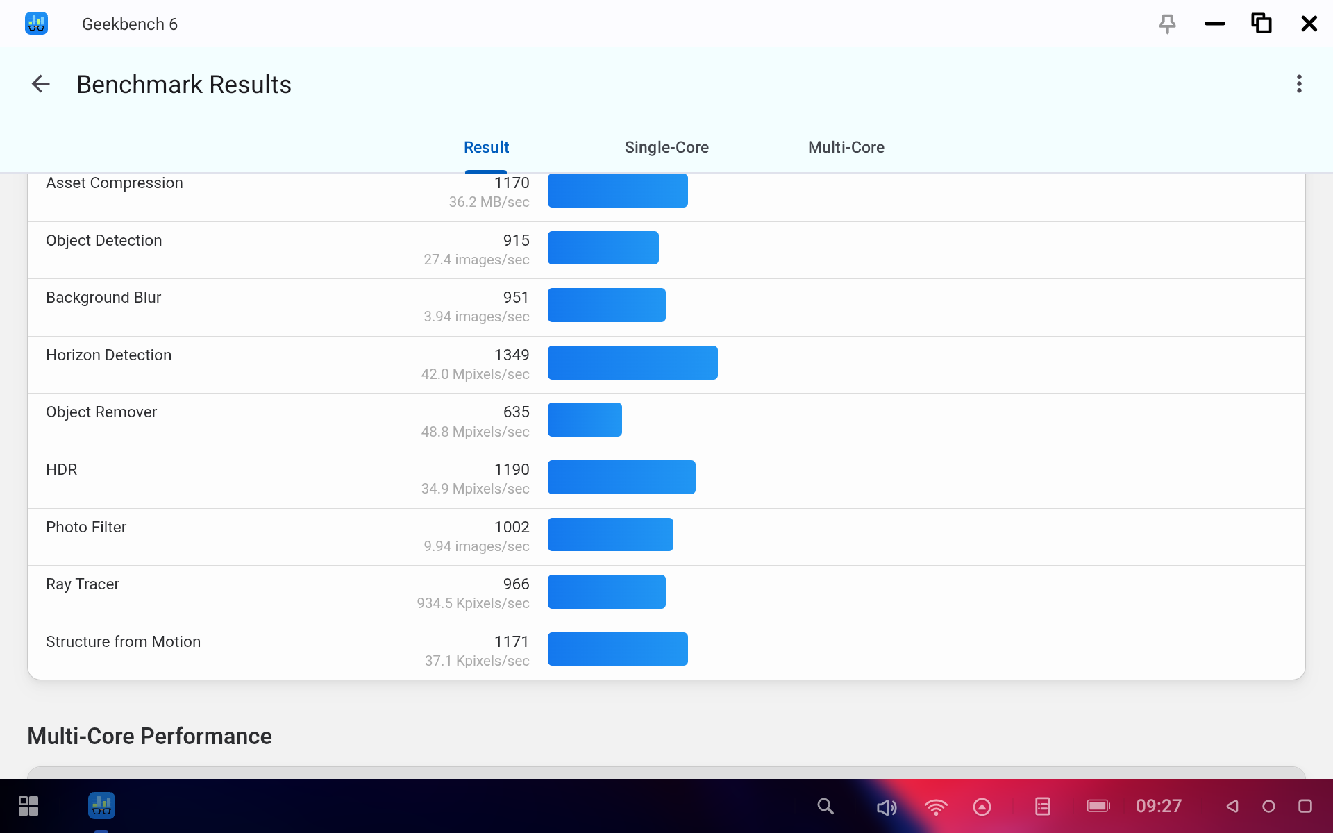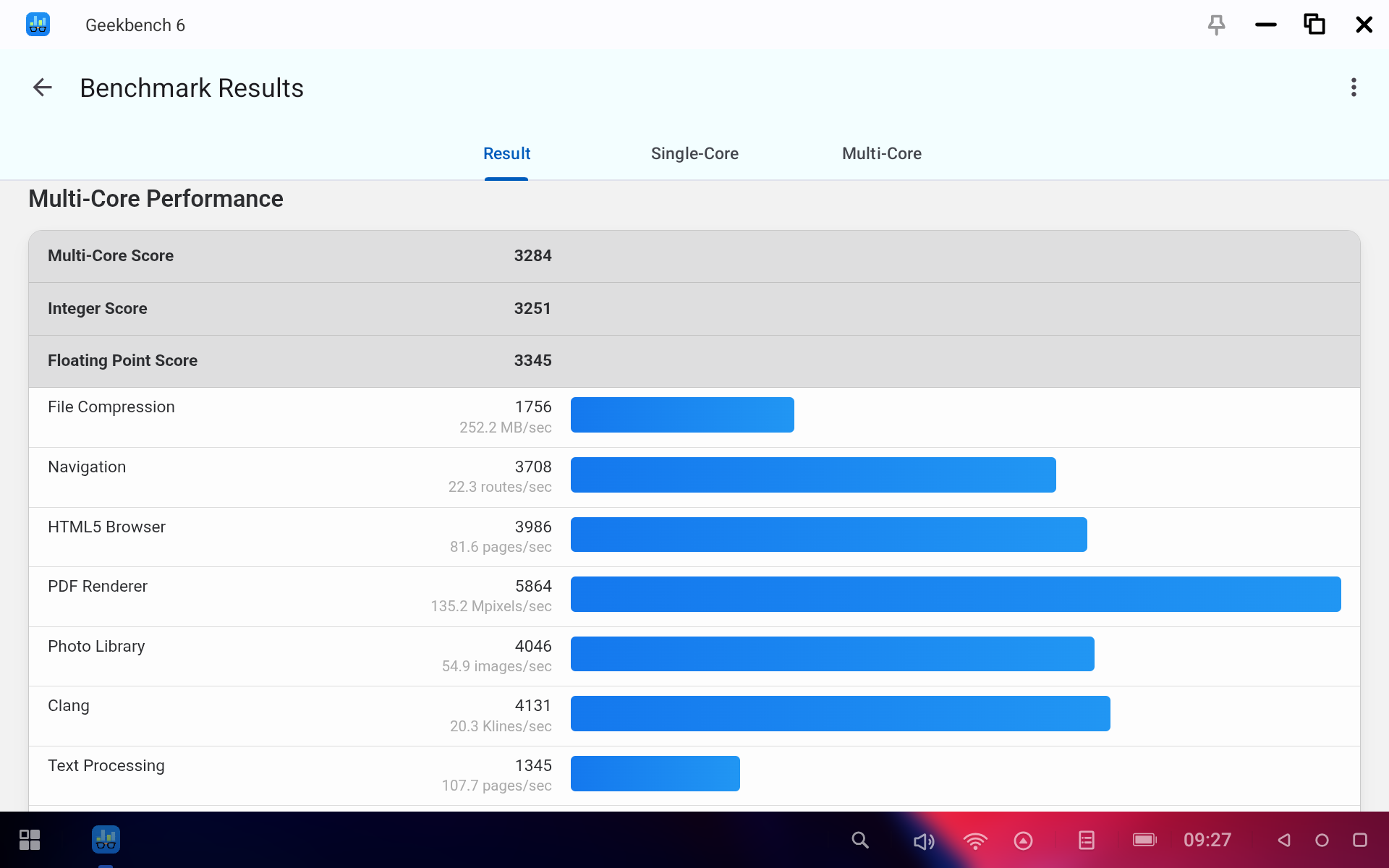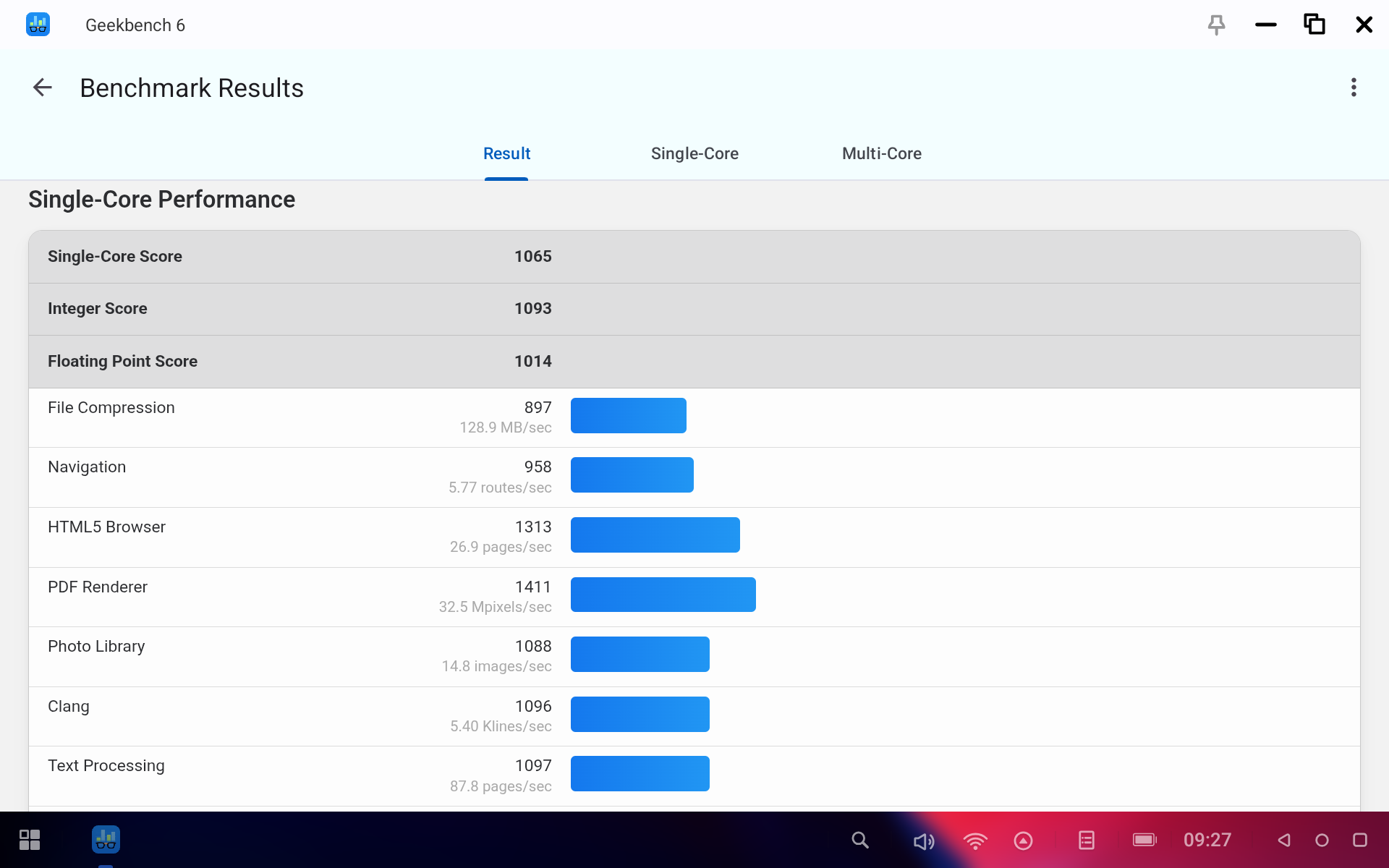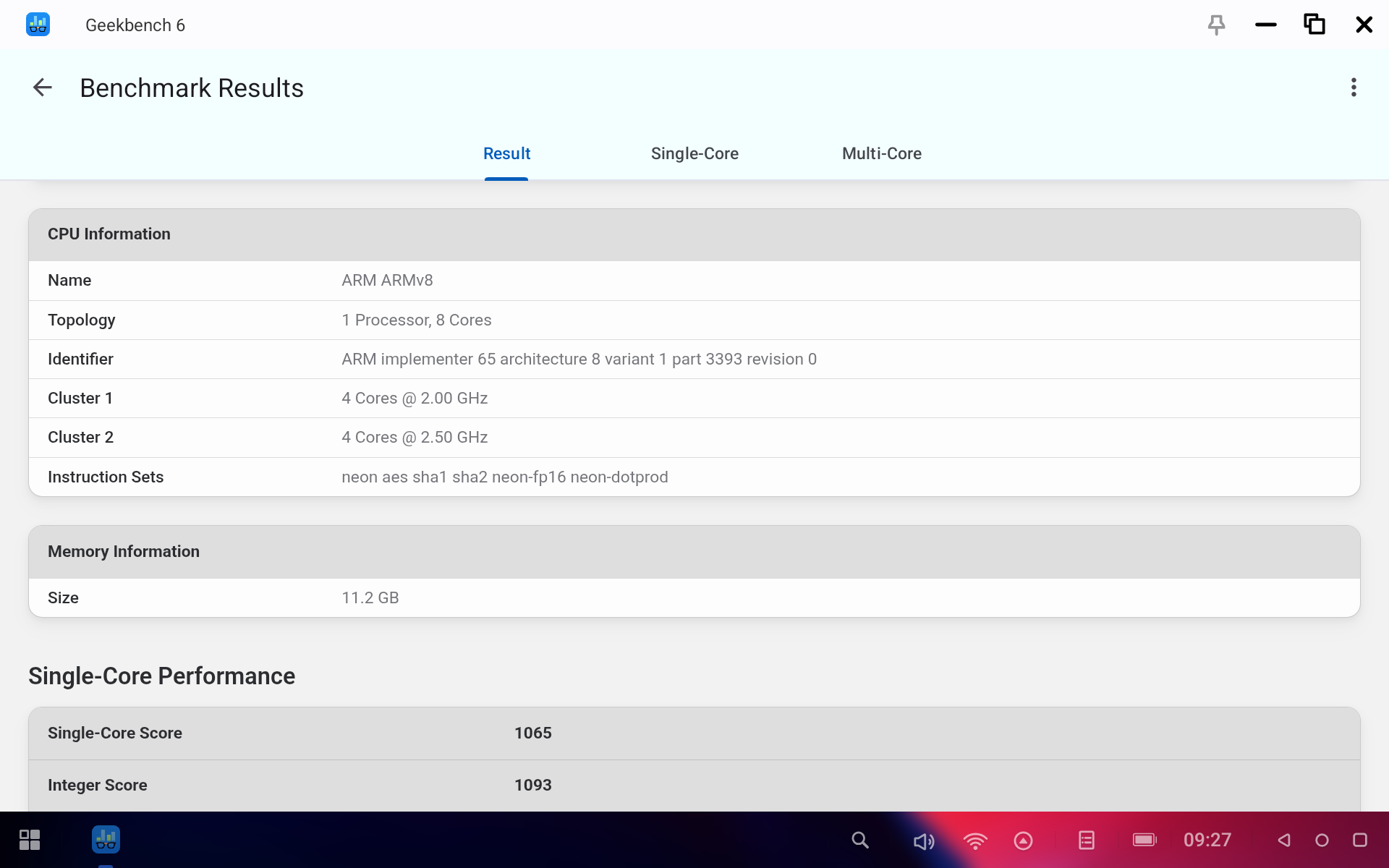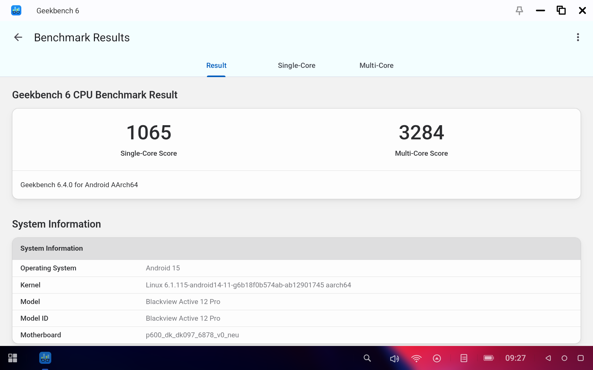 Посмотрим, на что способен планшет при помощи бенчмарков. Процессор MediaTek Dimensity 7300 дает вполне понятные результаты. GeekBench показал 1065 баллов в одноядерном тесте и 3284 в мультитесте. А значит, на планшете вполне можно будет и поиграть.