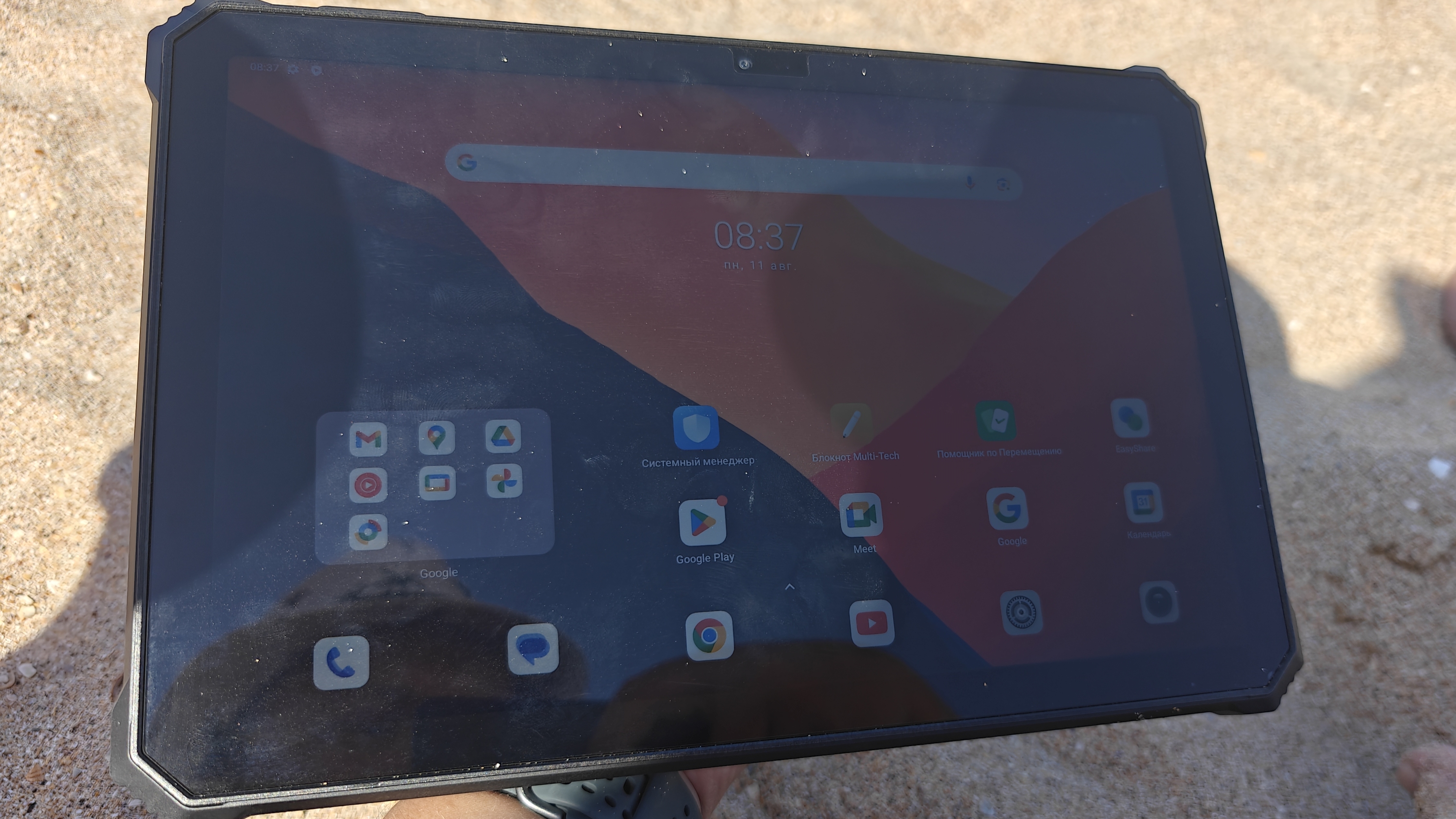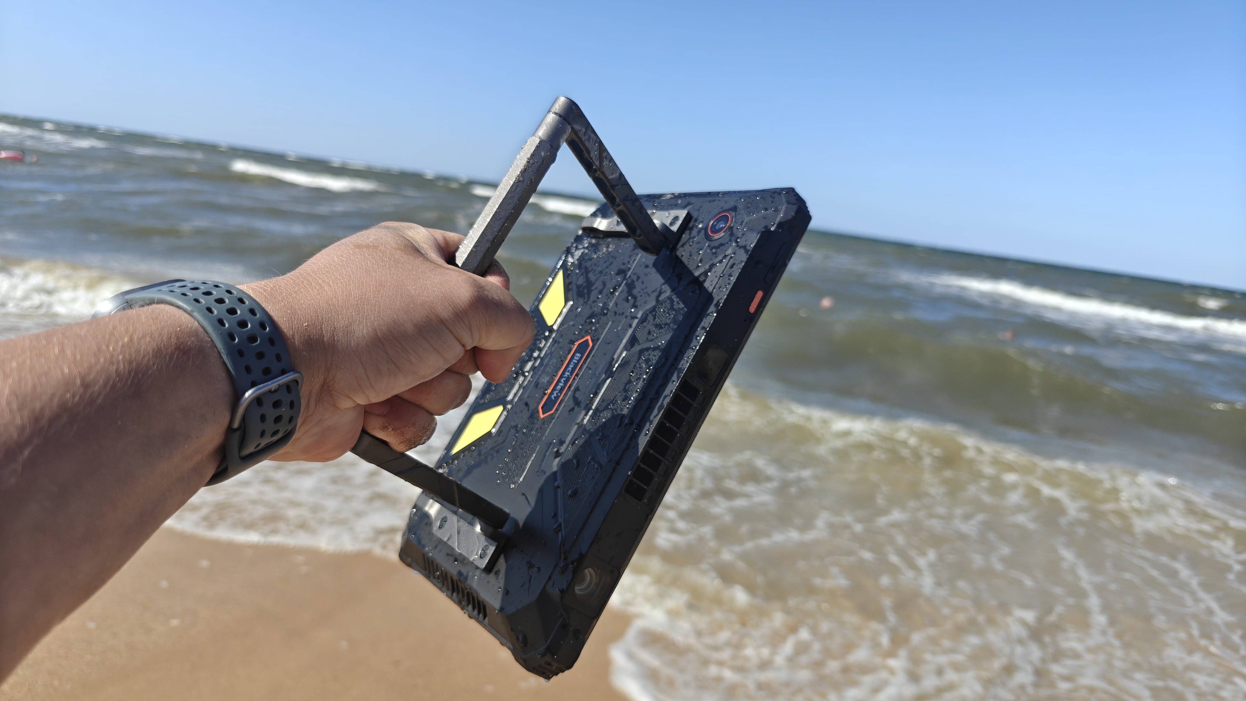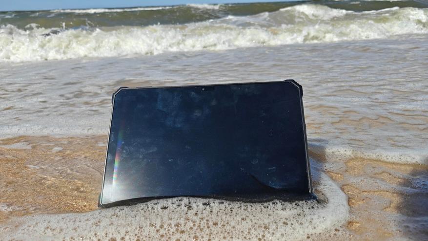Для начала скажу, что корпус планшета реально очень крепкий. Заявлена защита по стандарту IP68, 69K, выживание после падения аж с высоты 12 метров и погружение в воду до 1.5 метров на полчаса. Проверять эти заявки на пределе возможного, я, конечно, не стал, но вот то что можно абсолютно халатно заботиться о нем, это точно. Он просто неприхотлив. Берем его в руки и используем как угодно. Он спокойно выдерживал легкие удары и броски с небольшой высоты. Его корпусу неважно, где вы будете его использовать, или в офисе строительной компании с командировками на объект стройки, или в условиях кемпинга, или просто на пляже. Я лично не пожалел и проверил его защитные свойства на предмет купания в море. Он выдержал множество издевательств, валялся в песке, после чего был также отмыт в море и используется мною ежедневно после этого уже неделю.