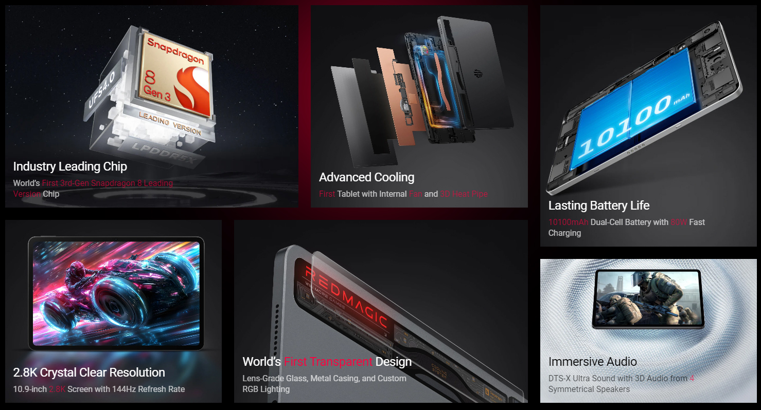 Что касается характеристик, они соответствуют китайскому варианту. RedMagic Nova остается единственным игровым планшетом, оснащенным разогнанной версией Snapdragon 8 Gen 3.