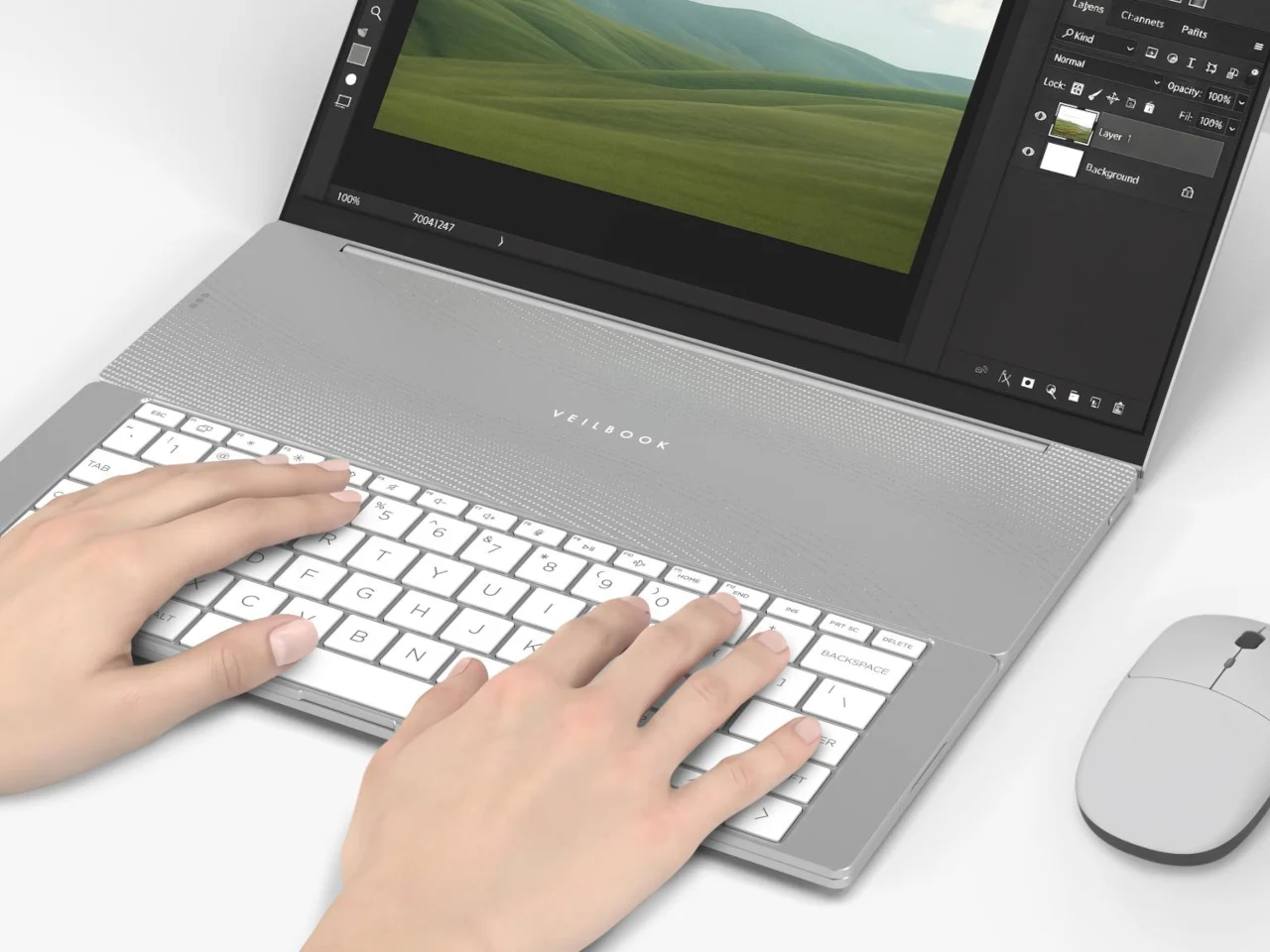 Главная особенность VeilBook — съемная клавиатура, которая не закреплена в корпусе стационарно. Пользователь может перемещать ее в зависимости от режима работы. Толщина ноутбука составляет менее 10 миллиметров.