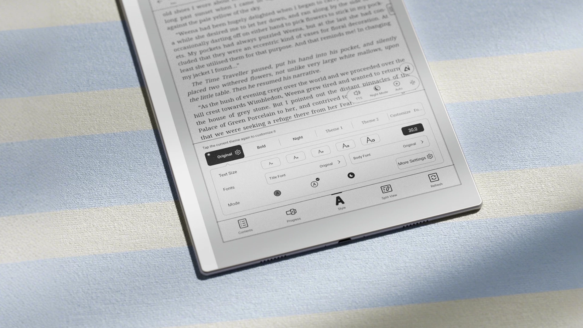 Экран остался прежним: 10,3 дюйма, технология E Ink Carta 1200, разрешение 300 точек на дюйм, монохромный. Планшет теперь выпускают в двух вариантах. Обычная модель без подсветки. Версия Lumi получила двухтоновую фронтальную подсветку, которая помогает читать при слабом освещении и не бликует. В комплекте идёт стилус Magnetic InkSense Plus. Поверхность текстурированная, есть распознавание ладони. Писать можно как обычной ручкой.