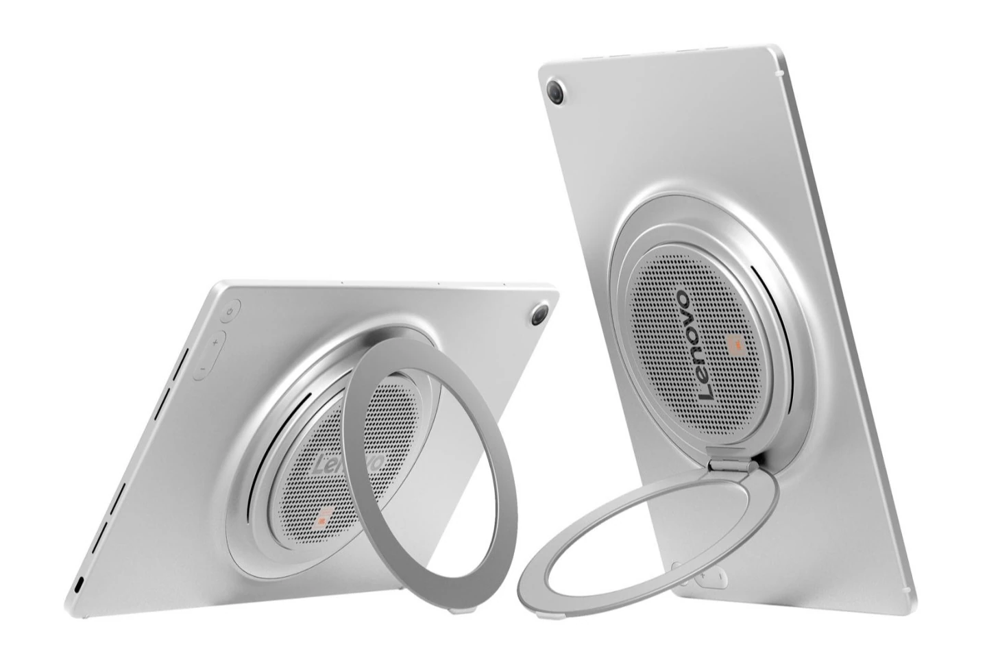 Дисплей Lenovo Tab Plus Gen2 имеет диагональ 12,1 дюйма и разрешение 2,5K. Конструктивной особенностью модели является размещение кнопки питания и клавиш регулировки громкости на задней стороне корпуса рядом с блоком динамиков. В комплект поставки входит многорежимная круглая подставка, позволяющая устанавливать планшет под различными углами. Производитель также включил в набор два защитных чехла — прозрачный и персонализированный вариант.
