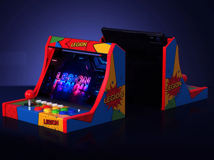 Компания Lenovo представила необычный аксессуар для своего игрового планшета Legion Tab. Устройство под названием Arcade Dock превращает восьмидюймовый гаджет в компактный аркадный автомат. Планшет вставляется в док-станцию через разъём USB-C и получает полноценное физическое управление: джойстик, восемь цветных кнопок действия и пять дополнительных клавиш на верхней грани. Всего четырнадцать физических входов, которых хватает для большинства классических аркад и эмуляторов ретро-консолей.