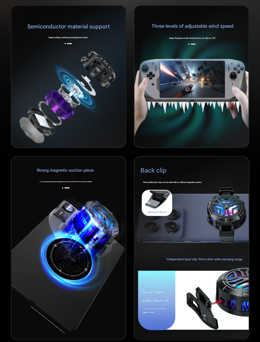 Новый охладитель Legion совместим с различными мобильными устройствами, включая недавно анонсированный игровой планшет Legion Tab. Согласно информации производителя, аксессуар оснащен тремя регулируемыми режимами работы, один из которых способен понижать температуру поверхности до -3 градусов Цельсия (26,6 градусов по Фаренгейту). Такие температурные показатели потенциально могут обеспечить более стабильную производительность устройств при запуске требовательных приложений и игр.