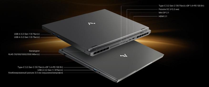 | Левая сторона | 1 x RJ-451 x USB-C (3.2 Gen 2, 10 Гбит/с) + DP1.4 + PD 100 Вт1 x USB-A (3.2 Gen1, 5 Гбит/с)1 x Mini Jack 3.5 мм |
