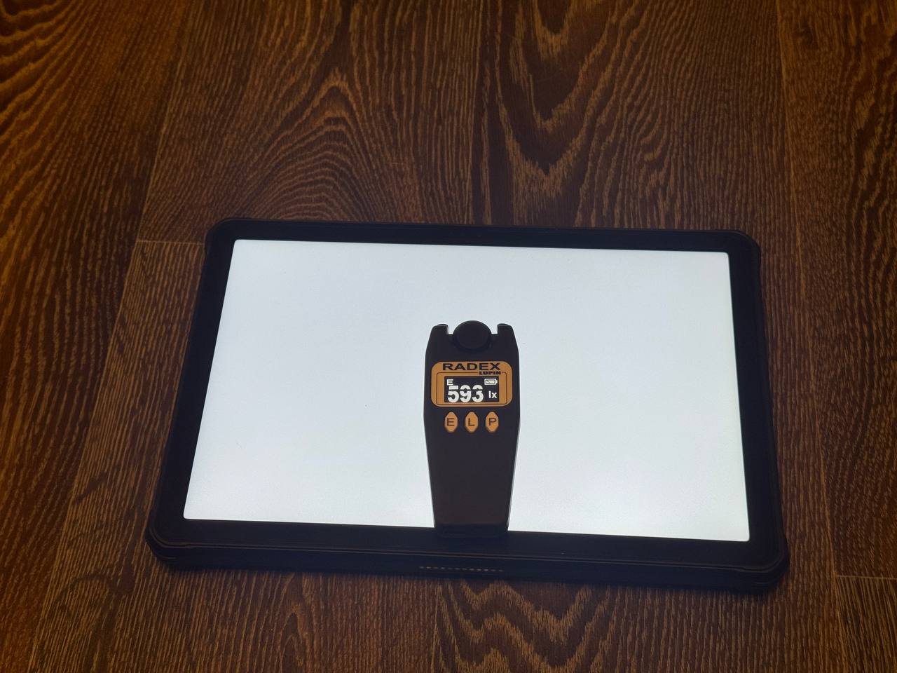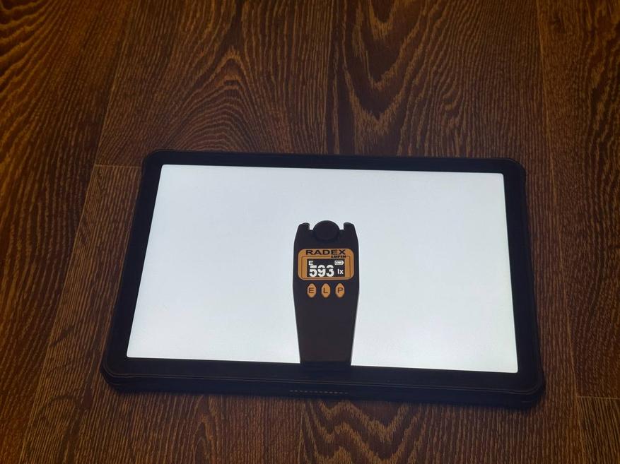 Экран демонстрирует корректную цветопередачу, хорошие градиенты и практически полное отсутствие ШИМ в статике, что положительно сказывается на комфорте для глаз. Даже котейка это оценила. Что касается яркости, то в центре экрана при наложении прибор выдает освещенность в районе 600 люкс и яркость около 180-190 кандел на квадрат.