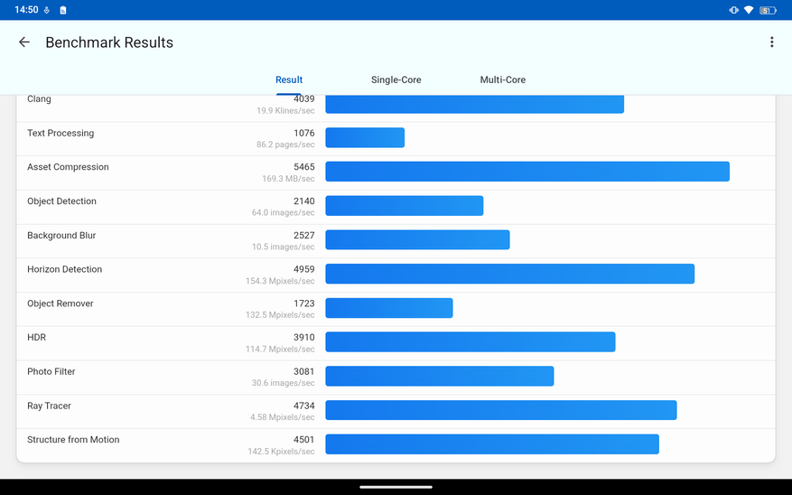 В AnTuTu планшет набирает под 1 000 000 баллов. Тест памяти в AnTuTu 11 показывает результат порядка 103 тысяч баллов, что говорит о достаточно быстрой работе накопителя. В повседневном использовании устройство ведёт себя шустро, проблем с интерфейсом или приложениями не возникает.