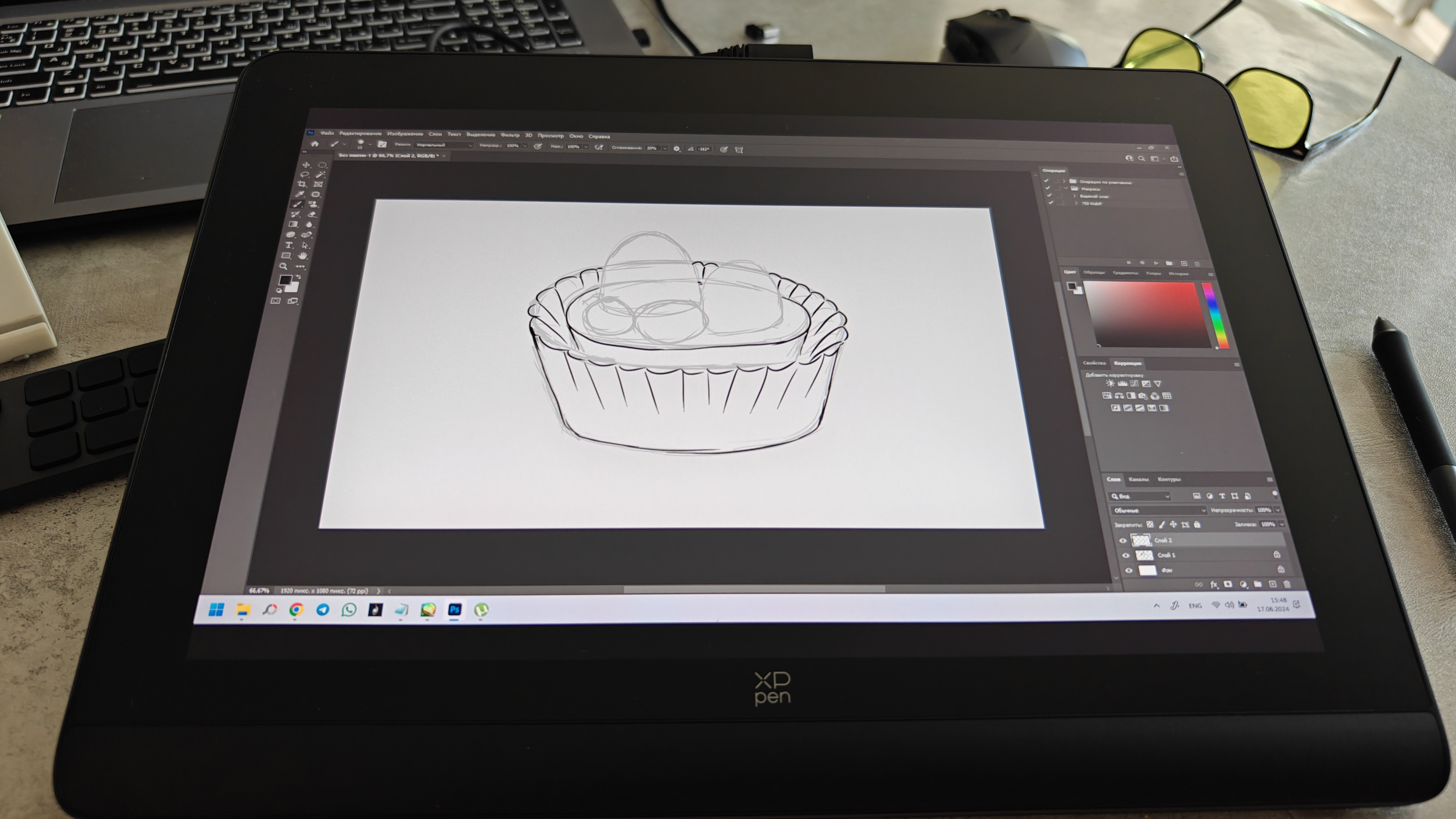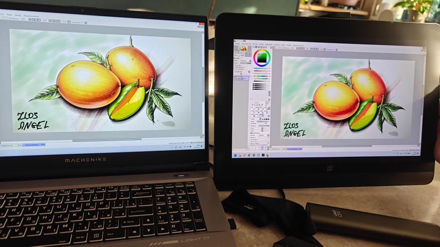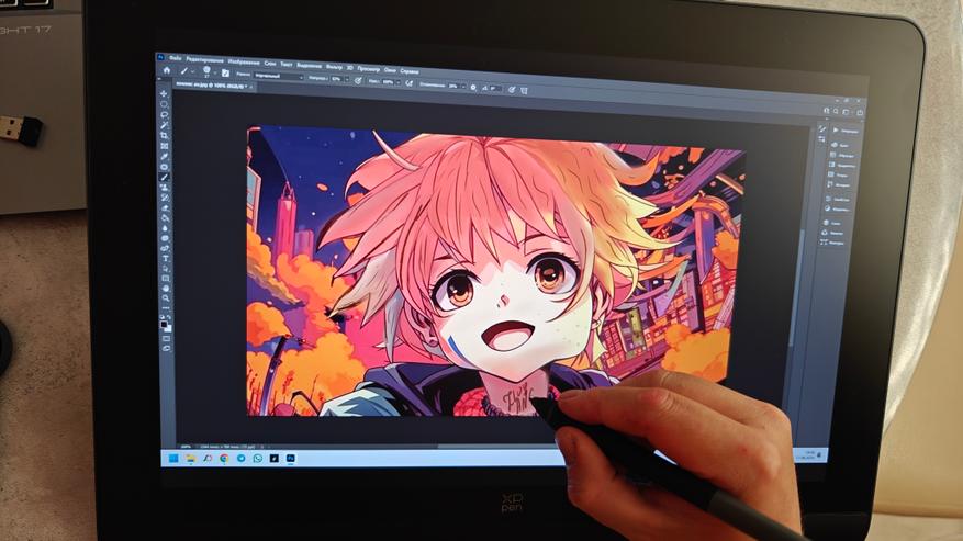 Цвета передаются именно так, какими они и должны быть. Дисплей ноутбука рядом с этим графическим планшетом теряется и в охвате, и в правильной передаче цветов, и в правильной гамме. При редактировании фотографий это чрезвычайно важно. После XP Pen вообще тяжело смотреть в дисплей ноутбука. Он блеклый и невнятный.