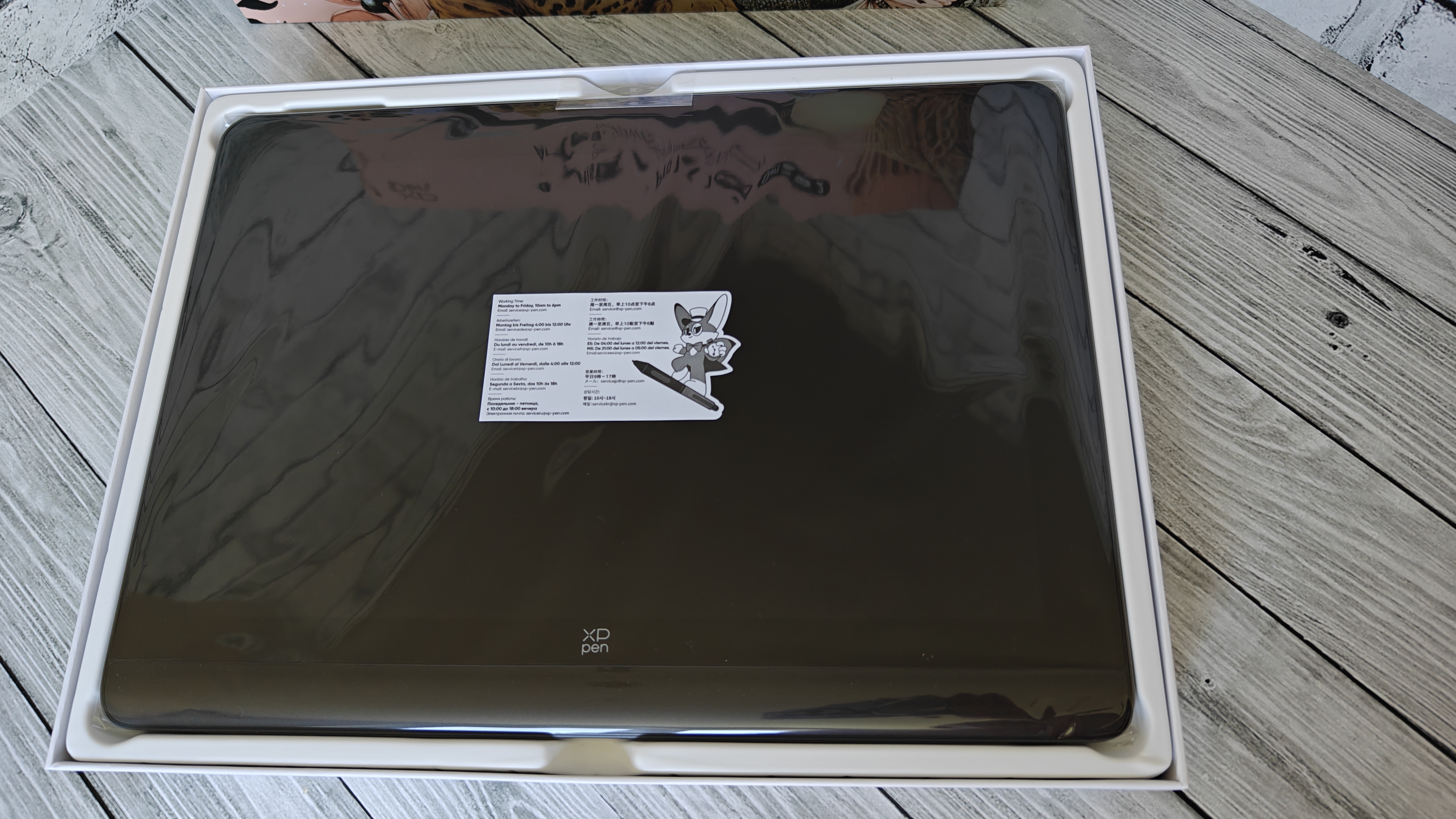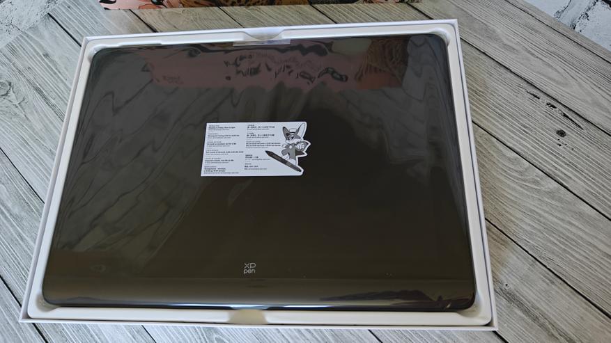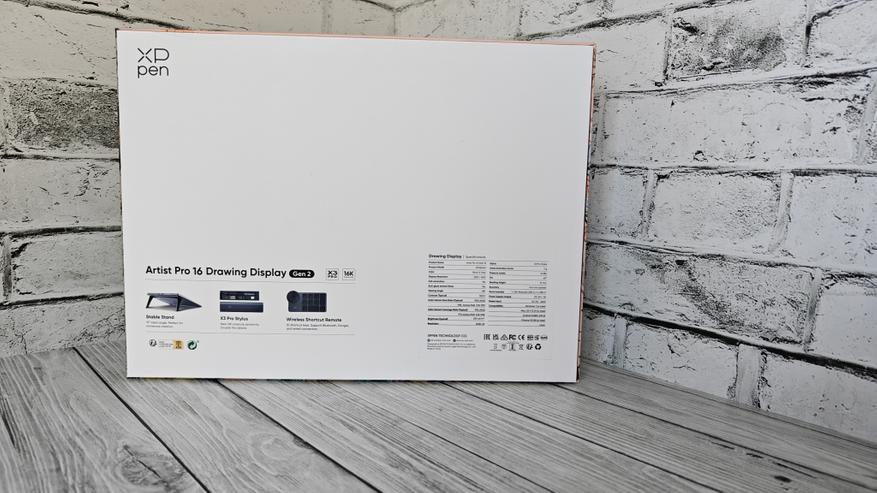 Внутри транспортировочной картонной коробки расположена основная коробка с ярким оформлением и дополнительно кабель 3в1 от XP PEN. Внутри массивная вставка из вспененного уплотнителя, чтобы устройство приехало к вам в целости и сохранности. На обратной стороне коробки расположили технические параметры и сведенья о преимуществах обновленной версии gen2. Основные преимущества это: