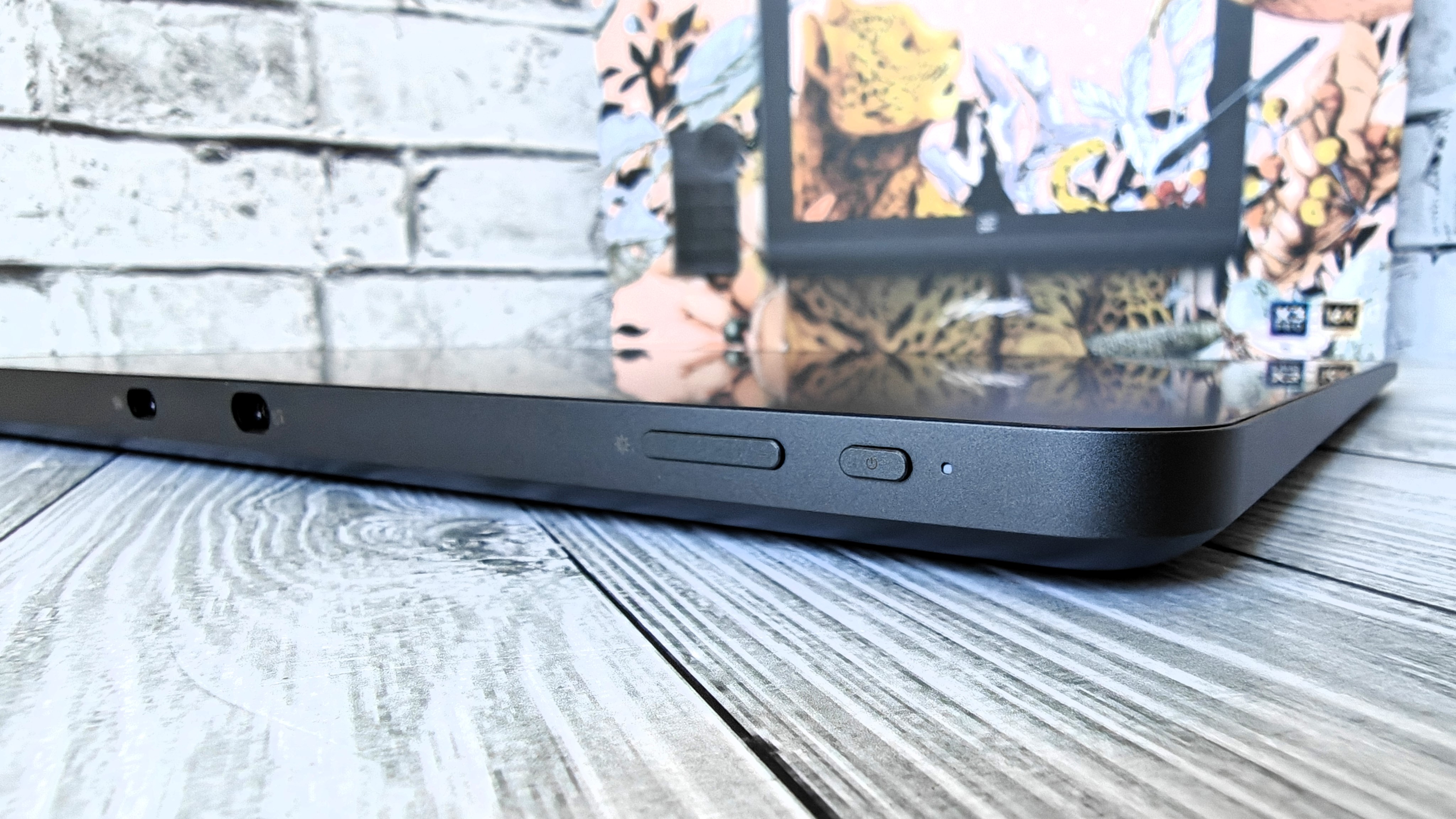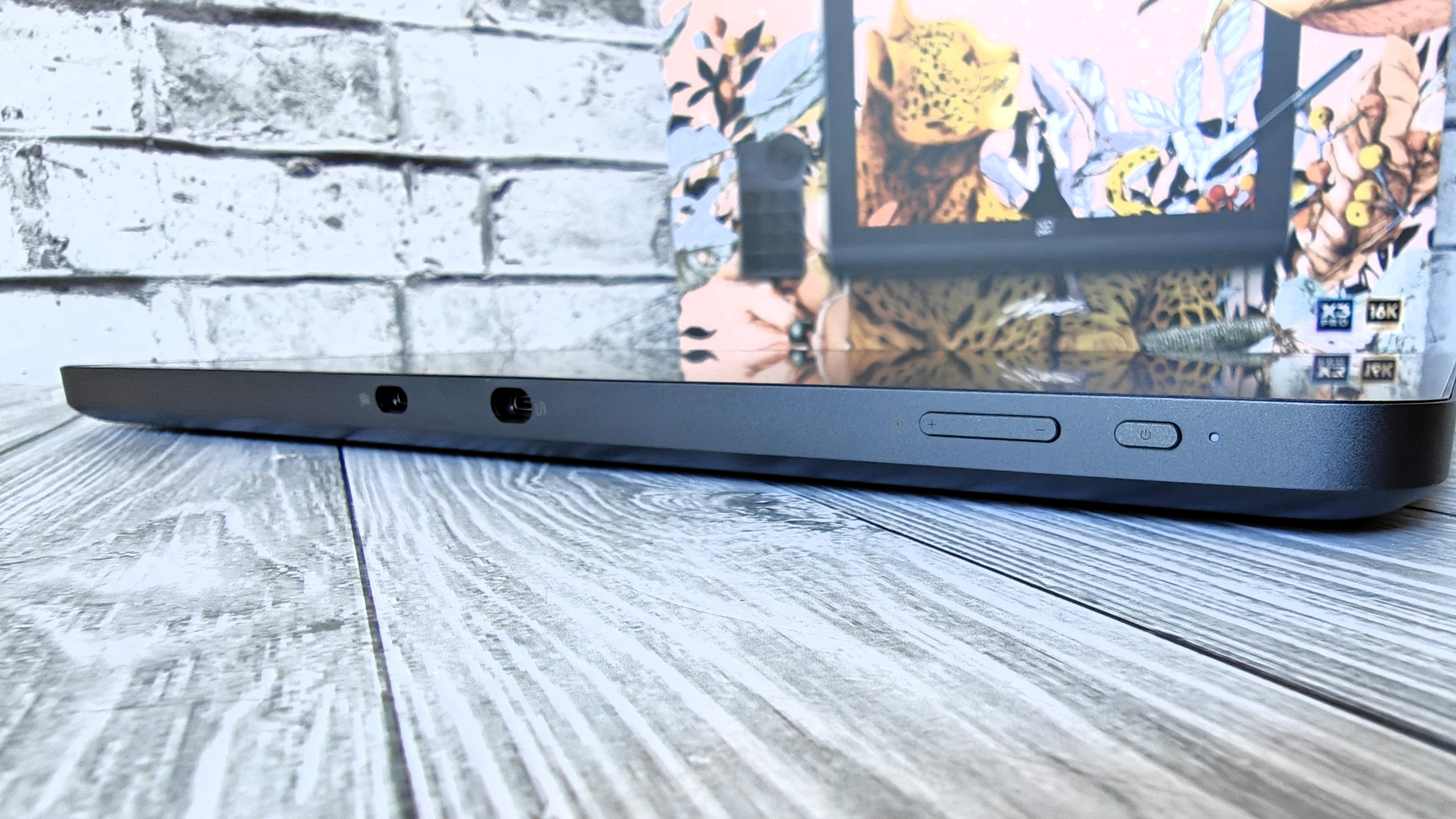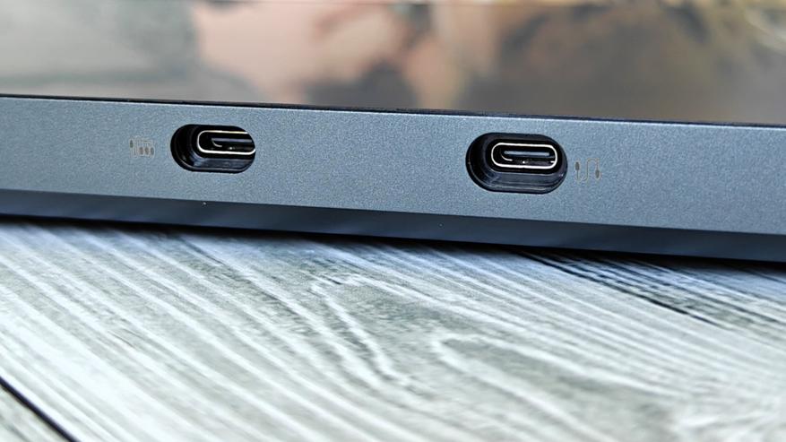 Сторона интерфейсов расположена сзади. Тут 2-х Type-C разъема, кнопки регулировки яркости и блокировки экрана. Рядом с кнопкой включения расположен светодиодный индикатор питания.