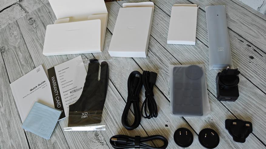 Комплектный блок питания с быстросъемными переходниками позволит использовать планшет в любой стране. Качество комплектных кабелей отличное. Перчатка позволит рисовать с упором на дисплей планшета, не оставляя следов и без сопротивления, чтобы не влияло на конечный результат.