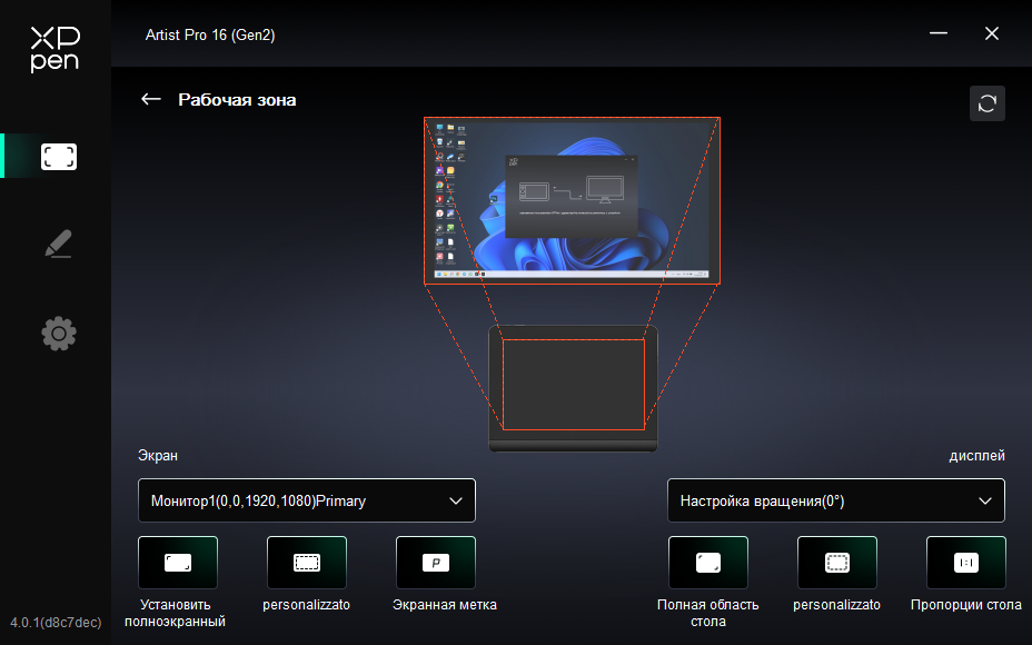 Более того, вся функциональность не просто доступна из коробки, а она тонко настраивается в официальном приложении. Тут и настройка схемы отображения по заготовленным стандартам и в ручную. Есть базовые инструменты регулировки отображения и калибровки экрана. Настройка стилуса просто невероятна. Тут и варианты реакций и активация режима рисования под углом и настройка функций кнопок. Когда подключаем пульт управления настраиваем и его кнопки.