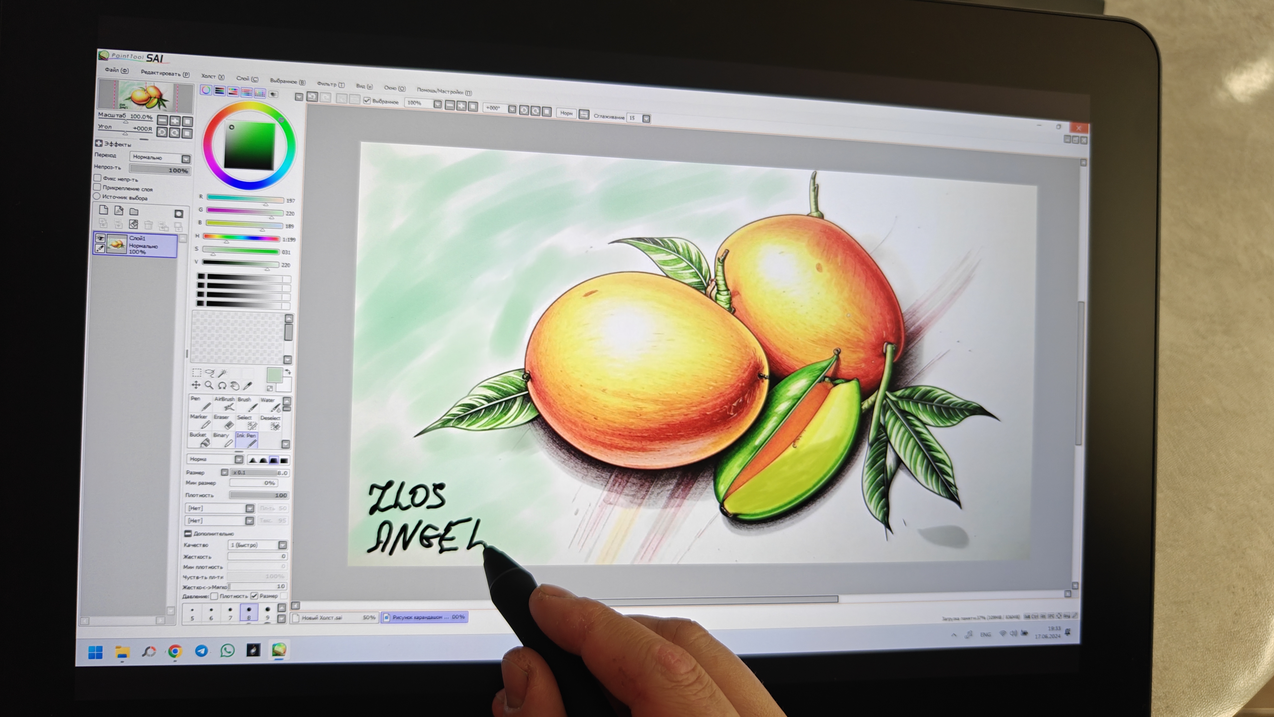 Теперь к рисованию. Прелесть подобных планшетов — это полная свобода выбора программного обеспечения. Вы можете рисовать в редакторах, создавать скретчи, зарисовки, обрабатывать фотографии да пусть и через Photoshop. Я открыл для себя возможности SAI. Рисовать одно удовольствие. Стилус подражает поведению обычного грифеля, Легкое нажатие вызывает лишь тонкий эффект, тогда как более сильное нажатие вызывает более четкий отклик. Привыкать к такому поведению легко. Это действительно предсказуемый инструмент, чтобы вы могли почувствовать себя художником. По сравнению с первым поколением тут намного более правдоподобно проходит рисование кистью. Заполнять пространство масляными красками приносит удовольствие и дарит свободу воображению. Собственно, вот пример зарисовок. И кистью, и пером, и карандашом рисуешь и с нескольких штрихов понимаешь, какого эффекта ждать от каждого нажатия. Легкое движение создает совсем тоненькую линию.