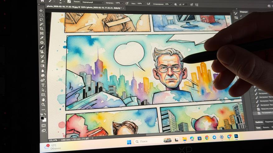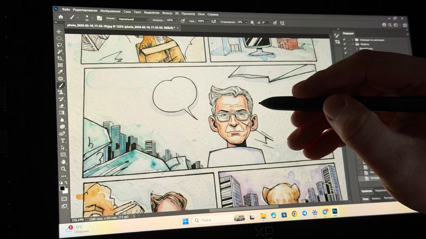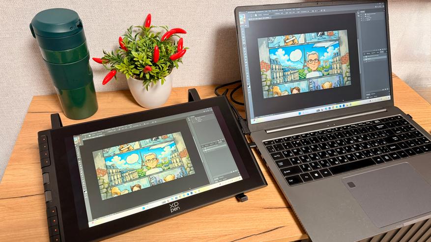 Минусы заметны: экран 11.9″ может показаться тесноватым для сложных работ, пластик корпуса бюджетный. Но всё это меркнет на фоне того, насколько стабильно и приятно он лежит в руке, помещается в рюкзак и не раздражает во время рисования.