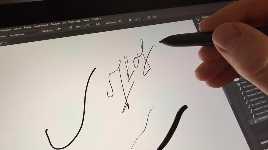 Классно, что нарисовать можно абсолютно любую лини, при помощи игры нажимом получаются едва заметны полоски тоньше волоска, или сразу симпатичный мазок кистью. Можно спокойно писать рукописным тестом, делать пометки и оформлять проекты. Всплывающая панель инструментов также часто выручает.