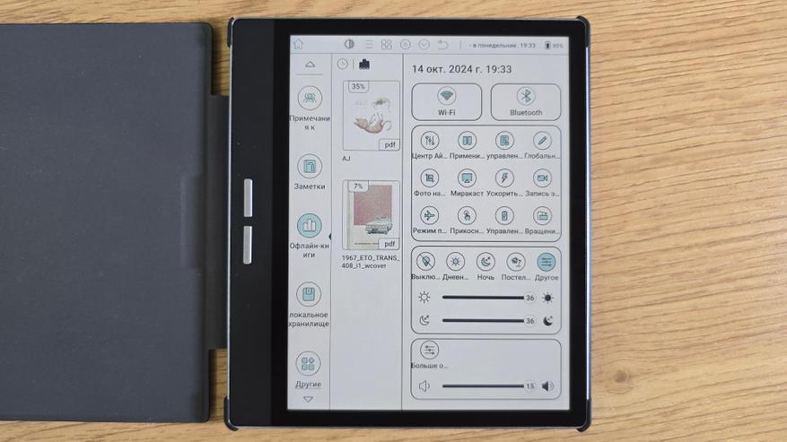 Возможности меню устройства также не огорчили. Bigme B751C работает на базе Android 11, что открывает доступ к огромному количеству приложений, включая программы для чтения, редактирования PDF-файлов, офисные инструменты и даже специализированные приложения для рисования. Меню интуитивно понятно и делится на несколько ключевых разделов: оффлайн-книги, локальное хранилище и список приложений. Это делает навигацию по устройству простой и удобной.