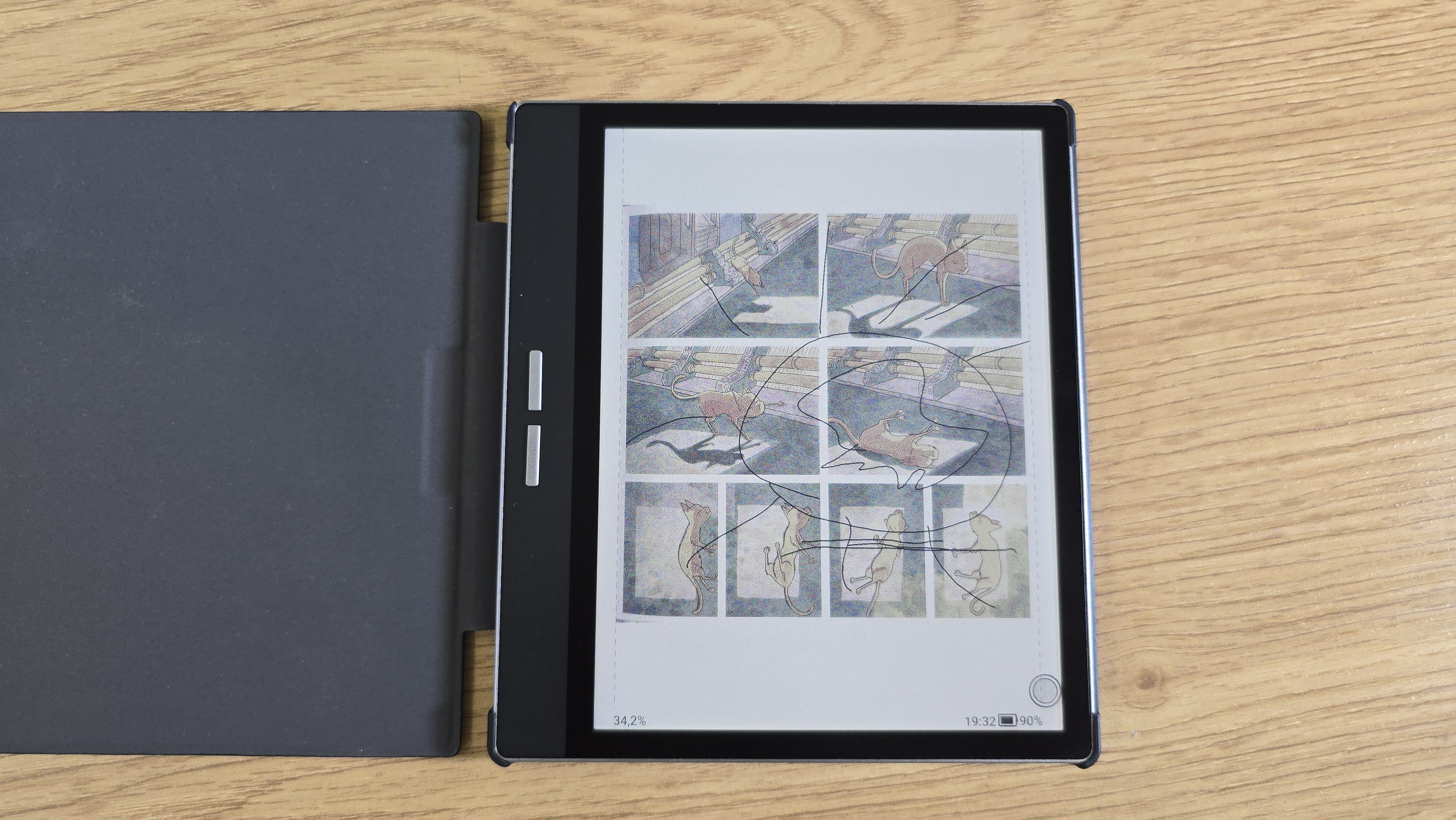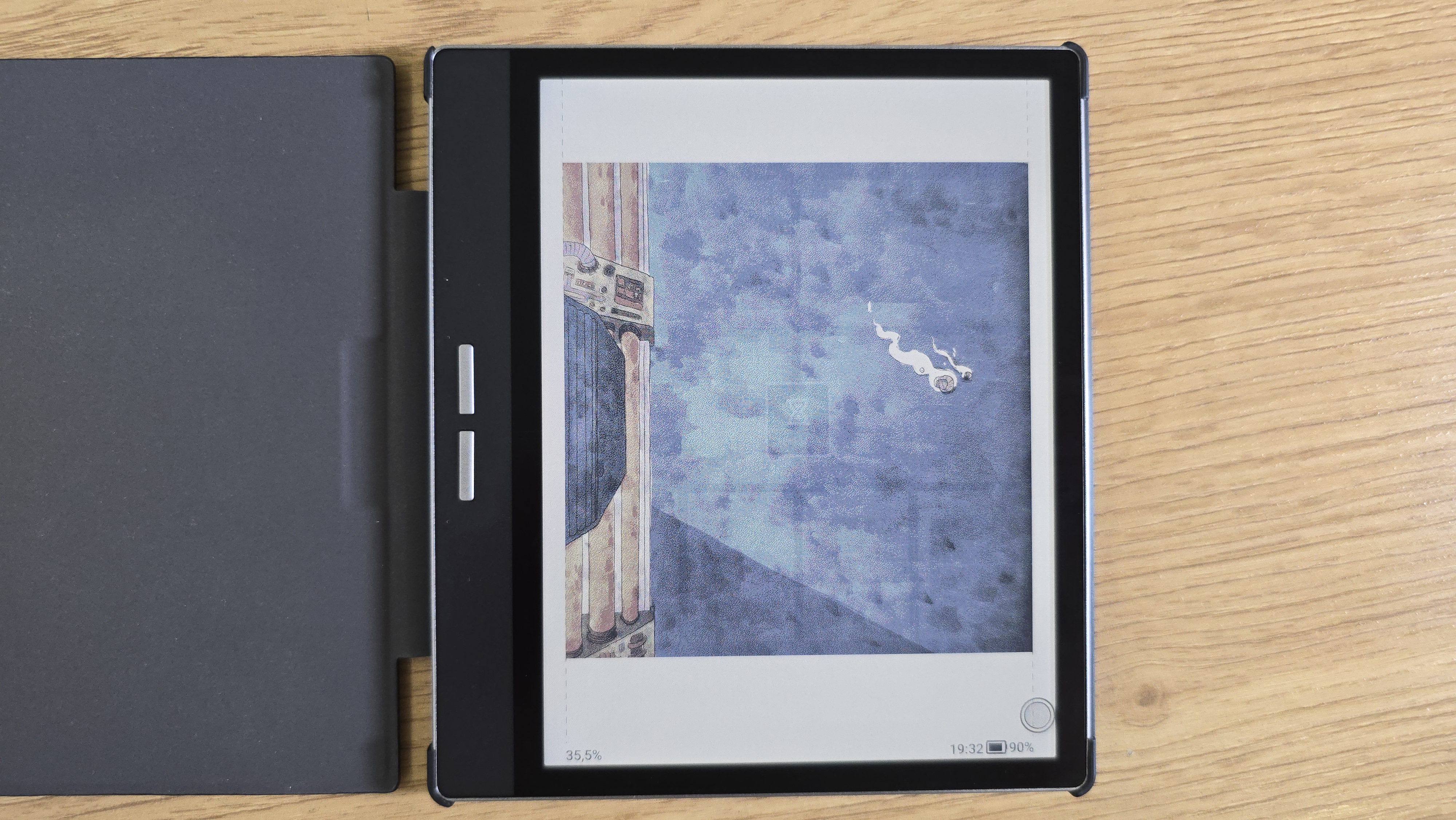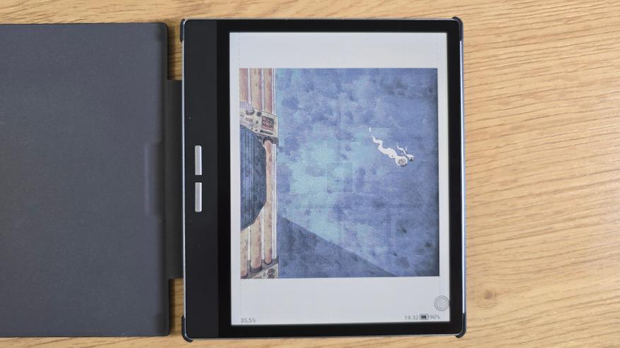 Во время работы с большими файлами, такими как сканированные PDF-документы (например, объемом около 200 МБ), устройство справлялось с пролистыванием страниц без заметных задержек. Это свидетельствует о хорошей производительности процессора и достаточном объеме оперативной памяти. Встроенный G-сенсор позволяет автоматически менять ориентацию экрана в зависимости от положения устройства, что также добавляет удобства при чтении.
