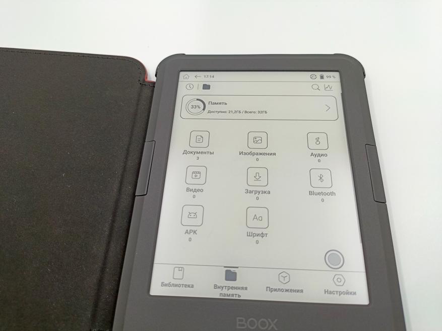 Электронная книга поставляется с 32 ГБ встроенной памяти, чего достаточно для хранения большого количества книг и файлов. При необходимости память можно расширить с помощью карты microSD объемом до 256 ГБ.
