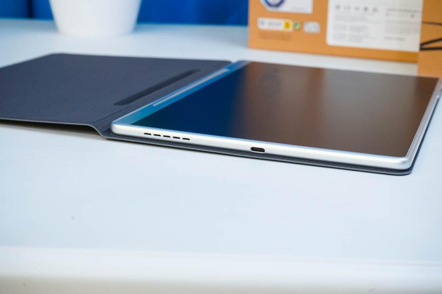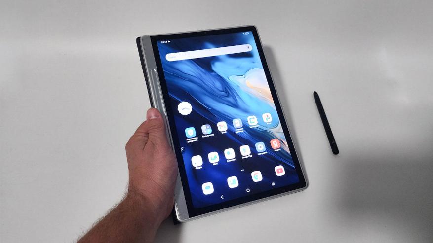 Чуть не забыл упомянуть про встроенные микрофон и стереодинамики — такой планшет позволяет общаться в Zoom, Teams и в других конференциях, что будет удобно для фрилансеров. Для этой же цели служит и компактная фронтальная камера (вебкамера) на 13 мегапикселей, расположенная в верхней рамке корпуса. Используется сенсор GC13A0 от GalaxyCore, что вполне достаточно для видеозвонков. Отмечу небольшой сенсор приближения и освещенности, окошко которого расположено справа от камеры.