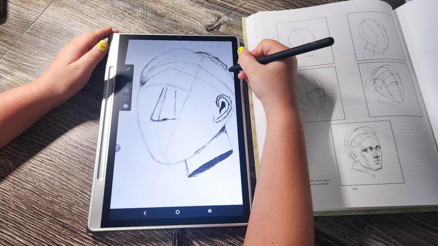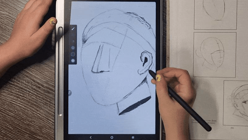 Сам процесс обучения (рисования скетчей), довольно простой. Всегда можно отменить действие, выбрать другой тип штриховки/инструмента/толщины/прозрачности линий. Исправление ошибок с учетом наличия на стилусе кнопки для быстрого переключения в режим ластика занимает минимальное время. Да и сам стилус отзывчивый — задержка минимальна/отклик. Да и в целом, обучение (рисование) на цифровом планшете сильно экономит время, да и расширяет возможности: скетч можно сохранить, дорисовать/перерисовать/сделать рисунок цветным и так далее.
