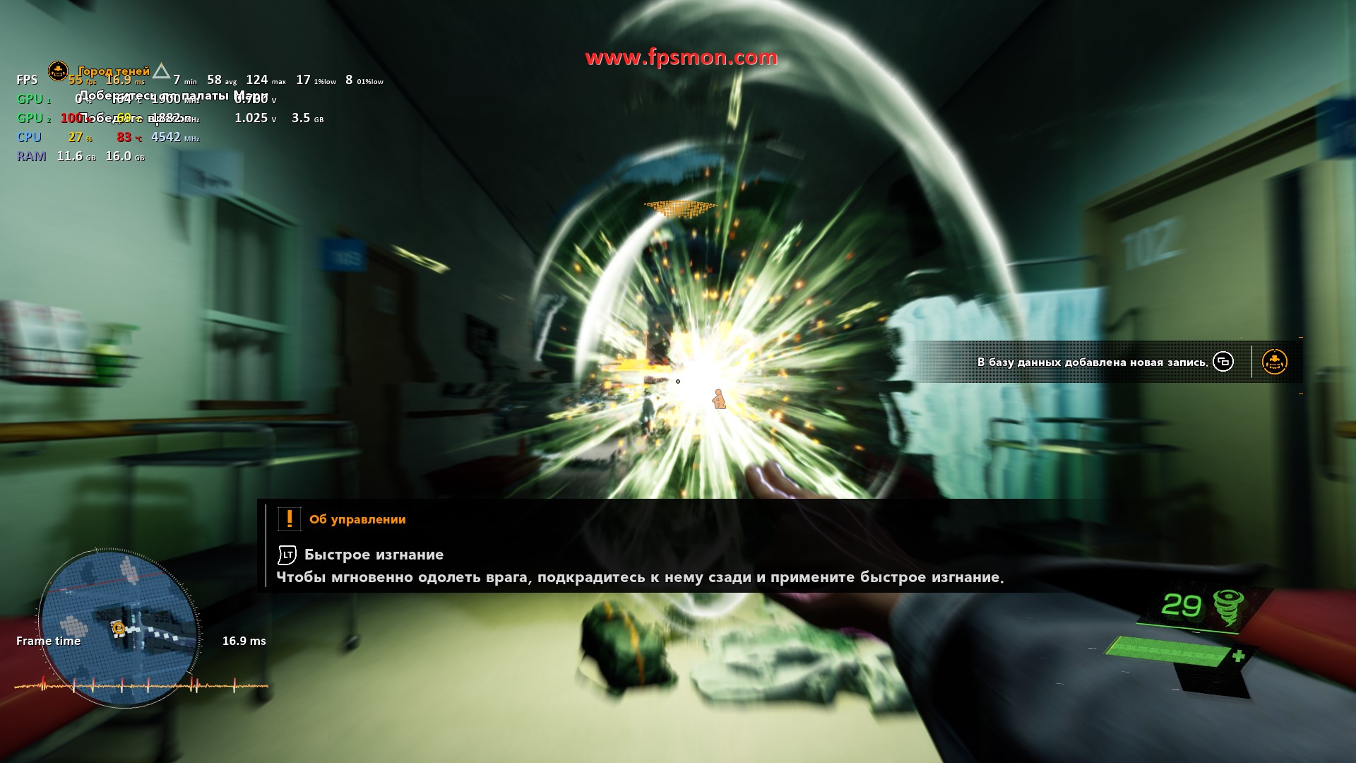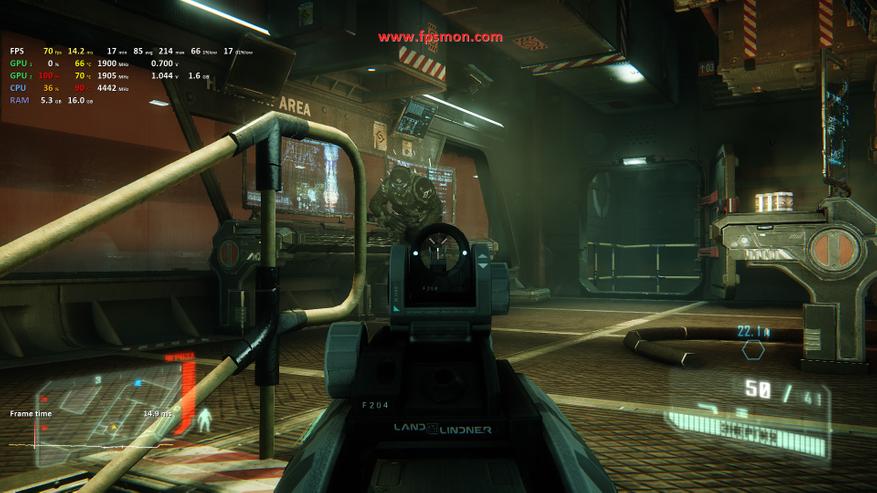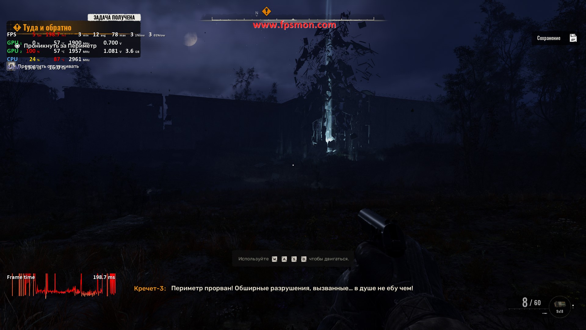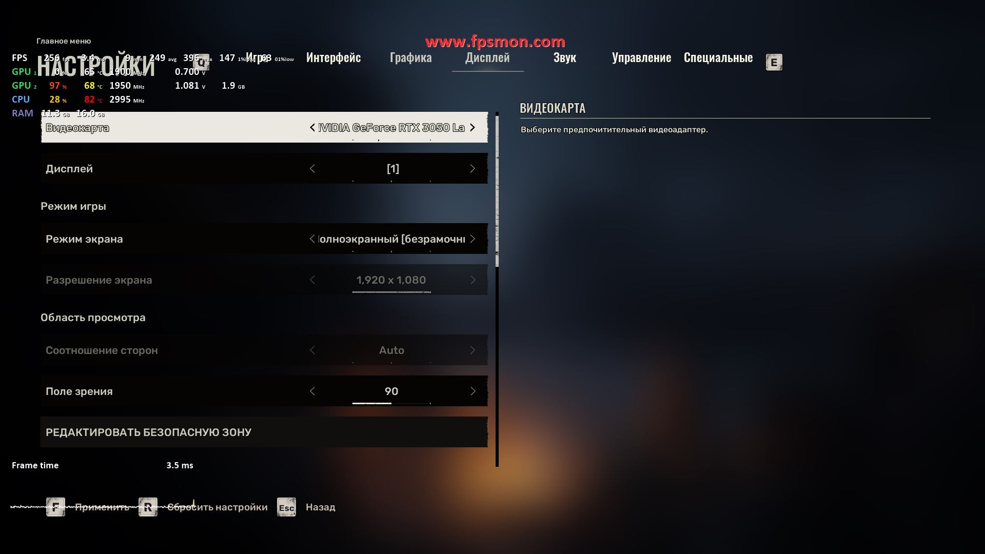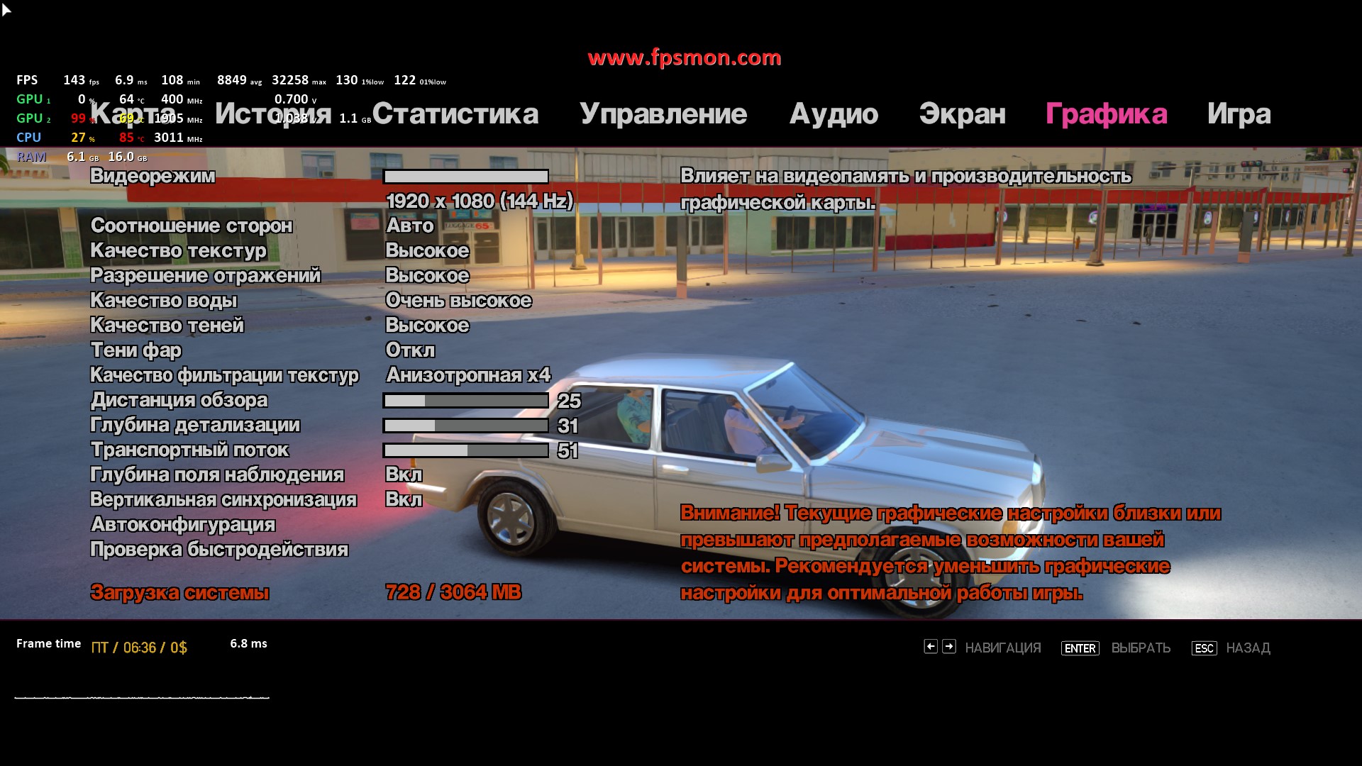 Особенно радует поведение системы в динамичных моментах — даже массовые перестрелки с взрывами не опускают FPS ниже 50. Запас оперативной памяти в 16 ГБ позволяет игре комфортно себя чувствовать, не выходя за 11.2 ГБ потребления.