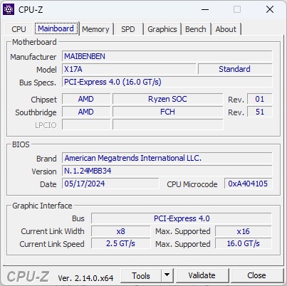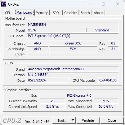 Maibenben X17A — базовая модель игровой линейки бренда, оснащённая 6-ядерным процессором AMD Ryzen 5 6600H и мобильной видеокартой RTX 3050. Главной особенностью является режим MUX, повышающий производительность GPU за счёт одновременного использования интегрированной и дискретной графики. Активируется он отдельной кнопкой на клавиатуре, позволяющей получить дополнительный «буст» прямо во время игры (80 Вт от дискретной и 5 Вт от интегрированной графики).
