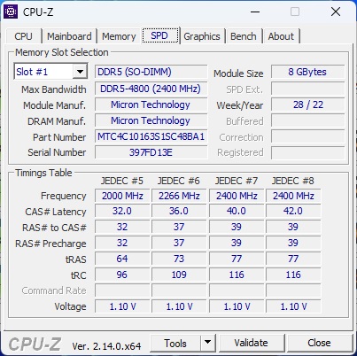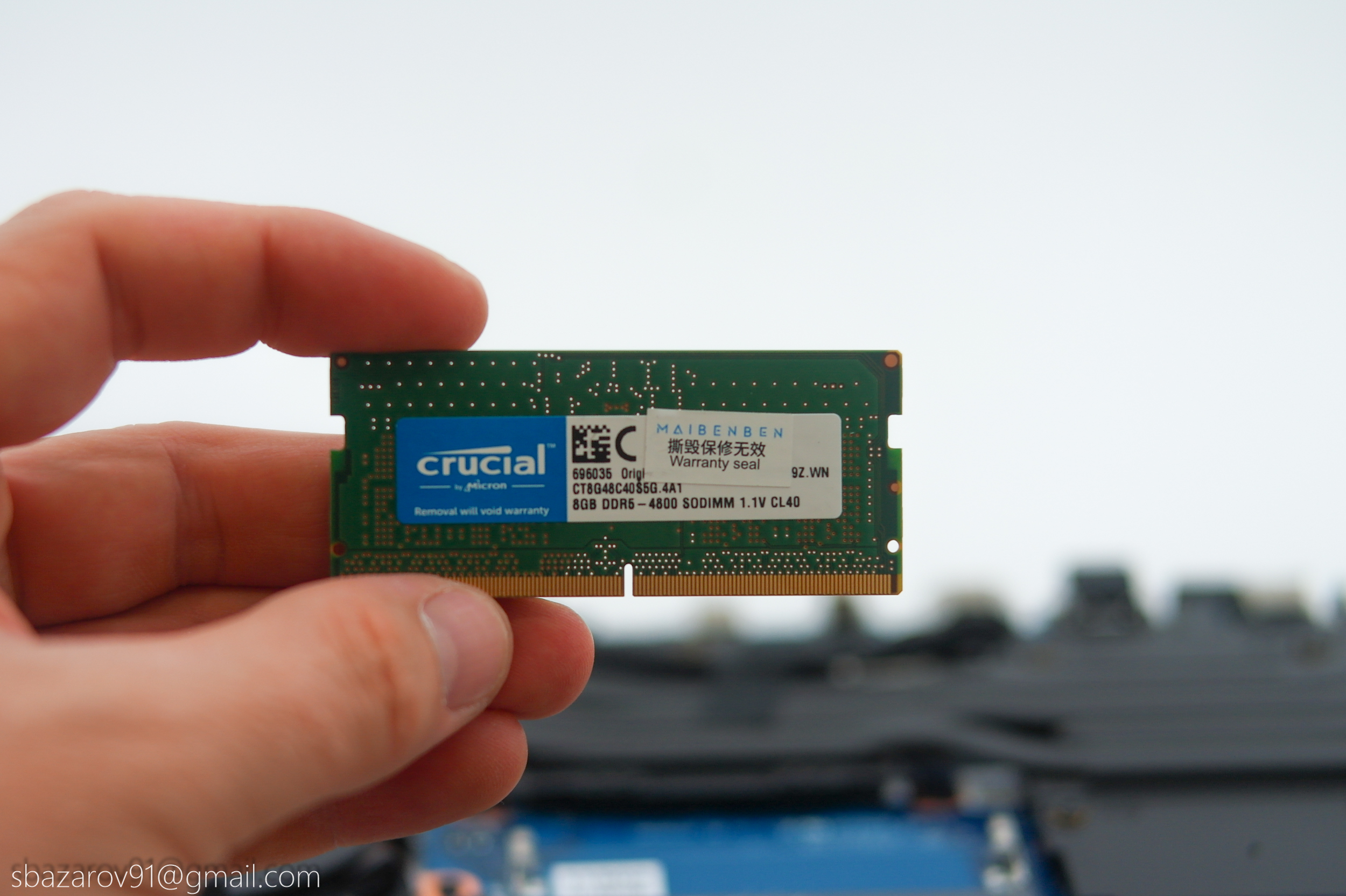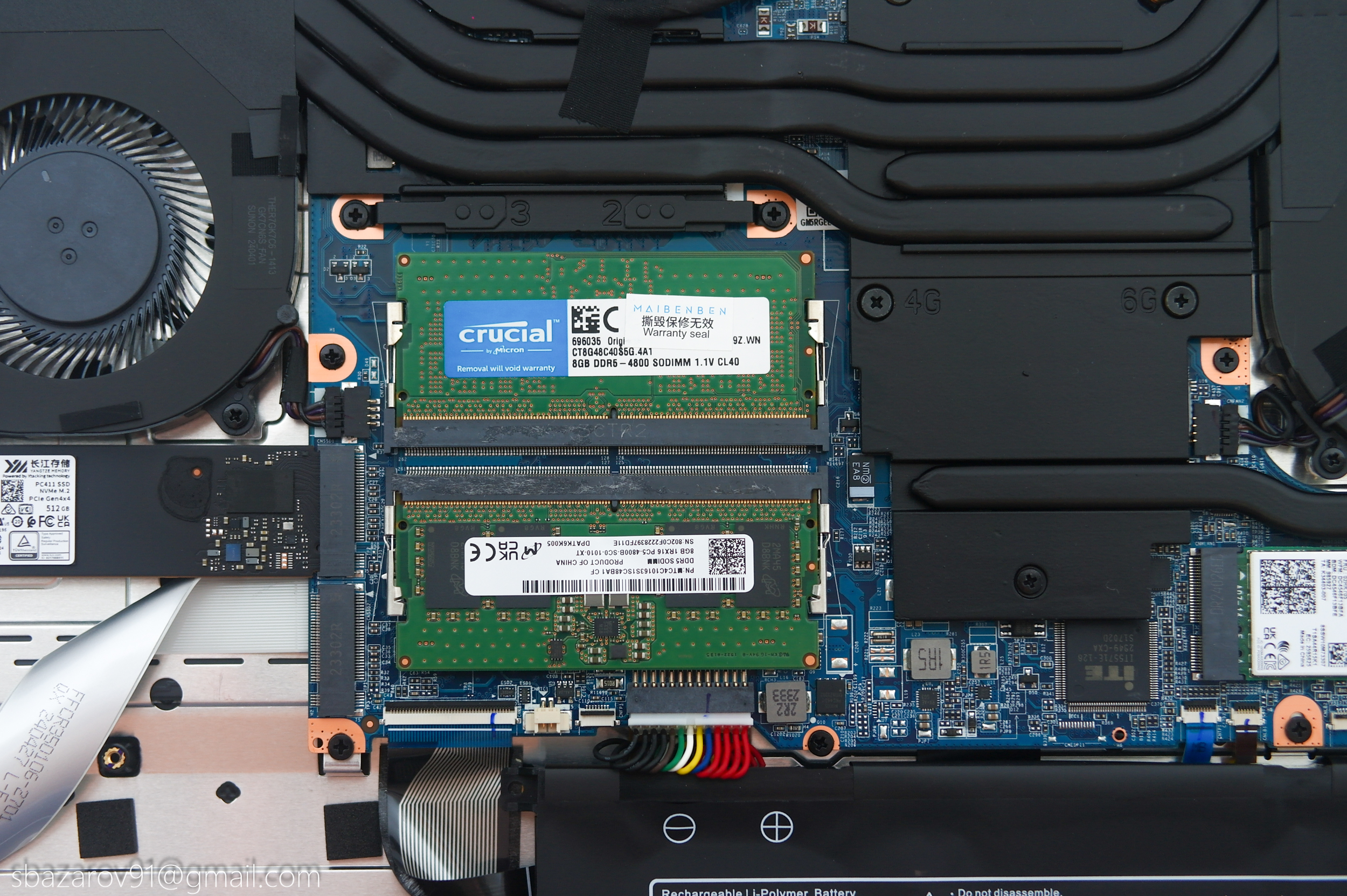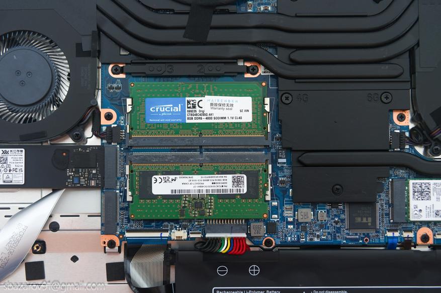 Мощному ПК обязательно нужна двухканальная память. Поэтому Maibenben комплектует X17A двумя планками объемом 8 Гб каждая. Частота максимальная для возможностей контроллера — 4800 МГц. Если менять, то только на больший объем. Сама память представлена Crucial с таймингами 40-39-39-77.