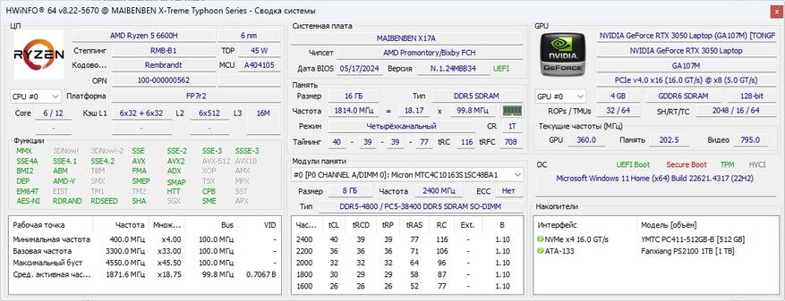 Обзор игрового ноутбука Maibenben X17A с Ryzen 5 6600H и RTX 3050: все еще актуально?