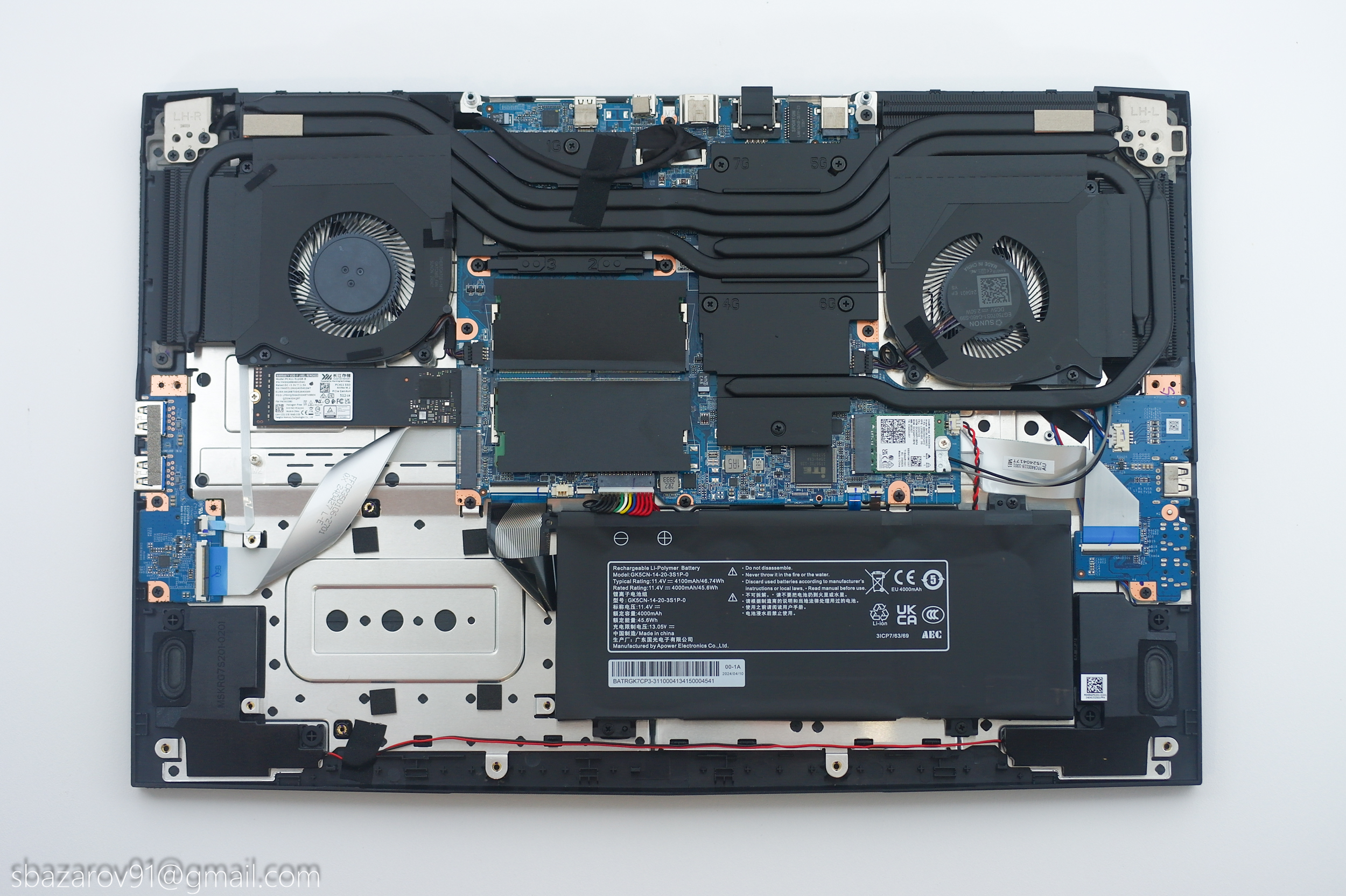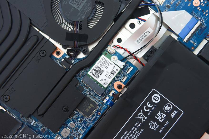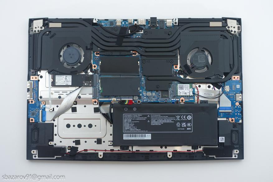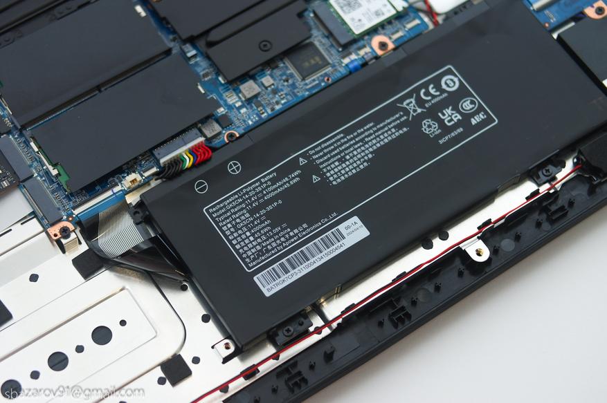 Что касается самого аккумулятора, то это 3S1P сборка с ёмкостью 4000 мА*ч (45,6). Высокой автономности ждать не приходится, во время теста на полную катушку ноутбук смог продержаться не более 1,5 часов. Однако, использование дискретной видеокарты нужно не всегда и её можно отключить, наслаждаясь встроенной AMD Radeon 660M и до 8 часов автономности.