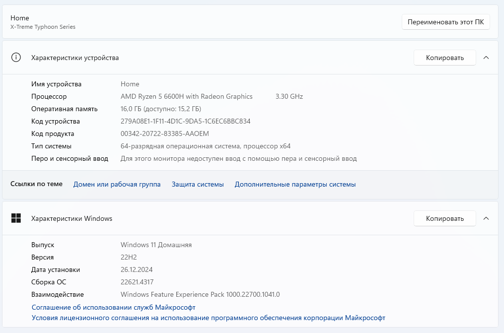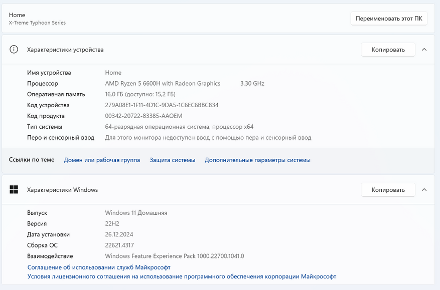 | Операционная система | Windows 11 Home |