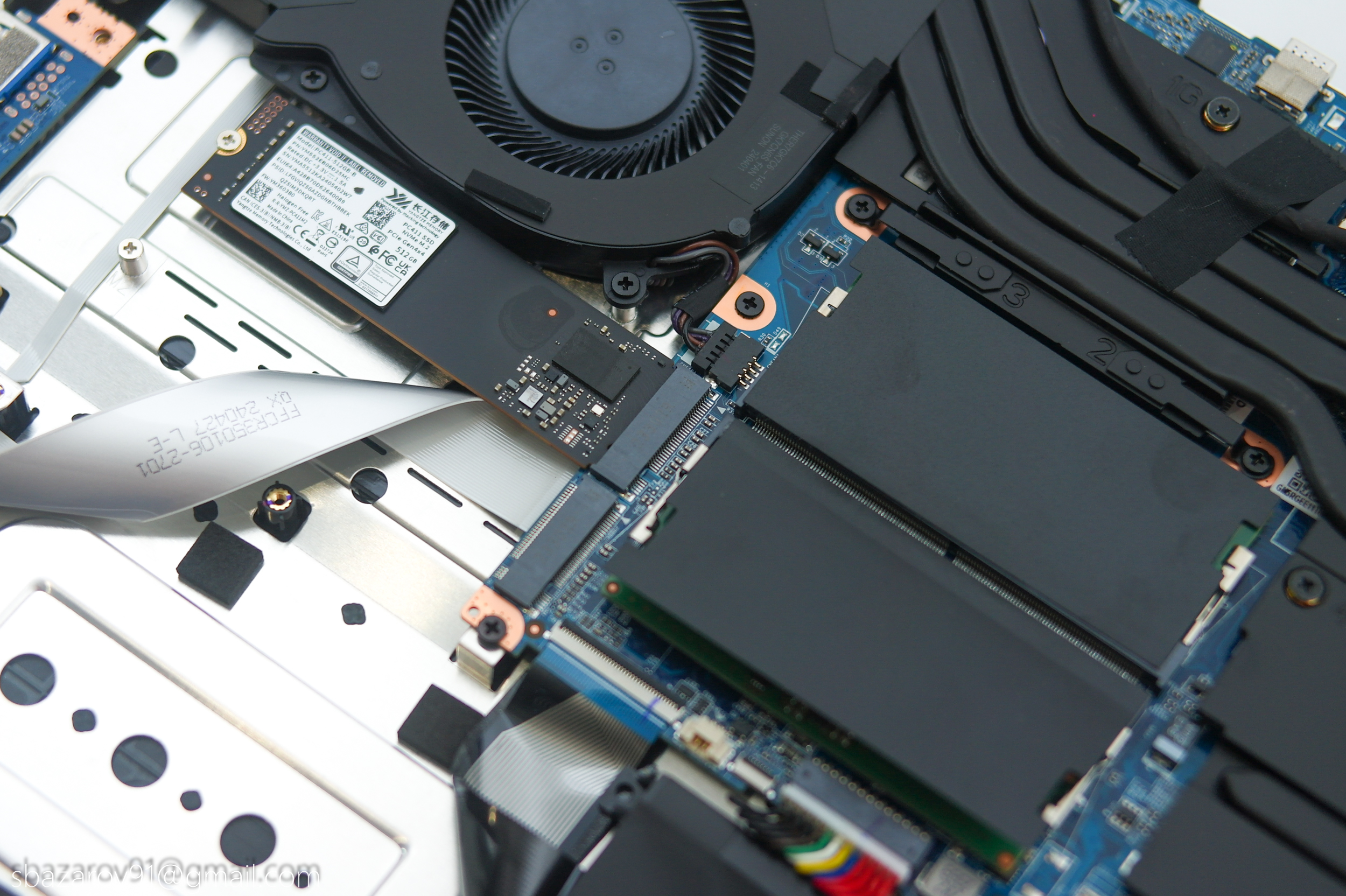Слева от оперативной памяти пара М.2 разъемов с интерфейсом Gen4. Один из них пустой (для будущего апгрейда), другой занят системным накопителем YANGTZE MEMORY PC411 объемом 512 Гб.