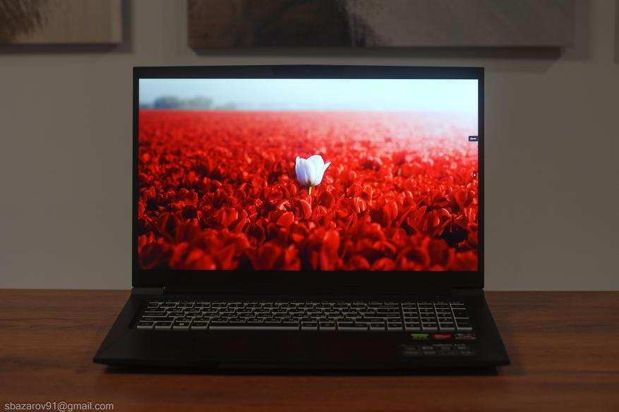 Под крышкой скрывается 17,3-дюймовый матовый дисплей с разрешением 1920x1080 и частотой обновления 144 Гц. Плотность пикселей составляет 127 ppi. В X17A используется матрица BOE NV173FHM-NX4 с 8-битной глубиной цвета.