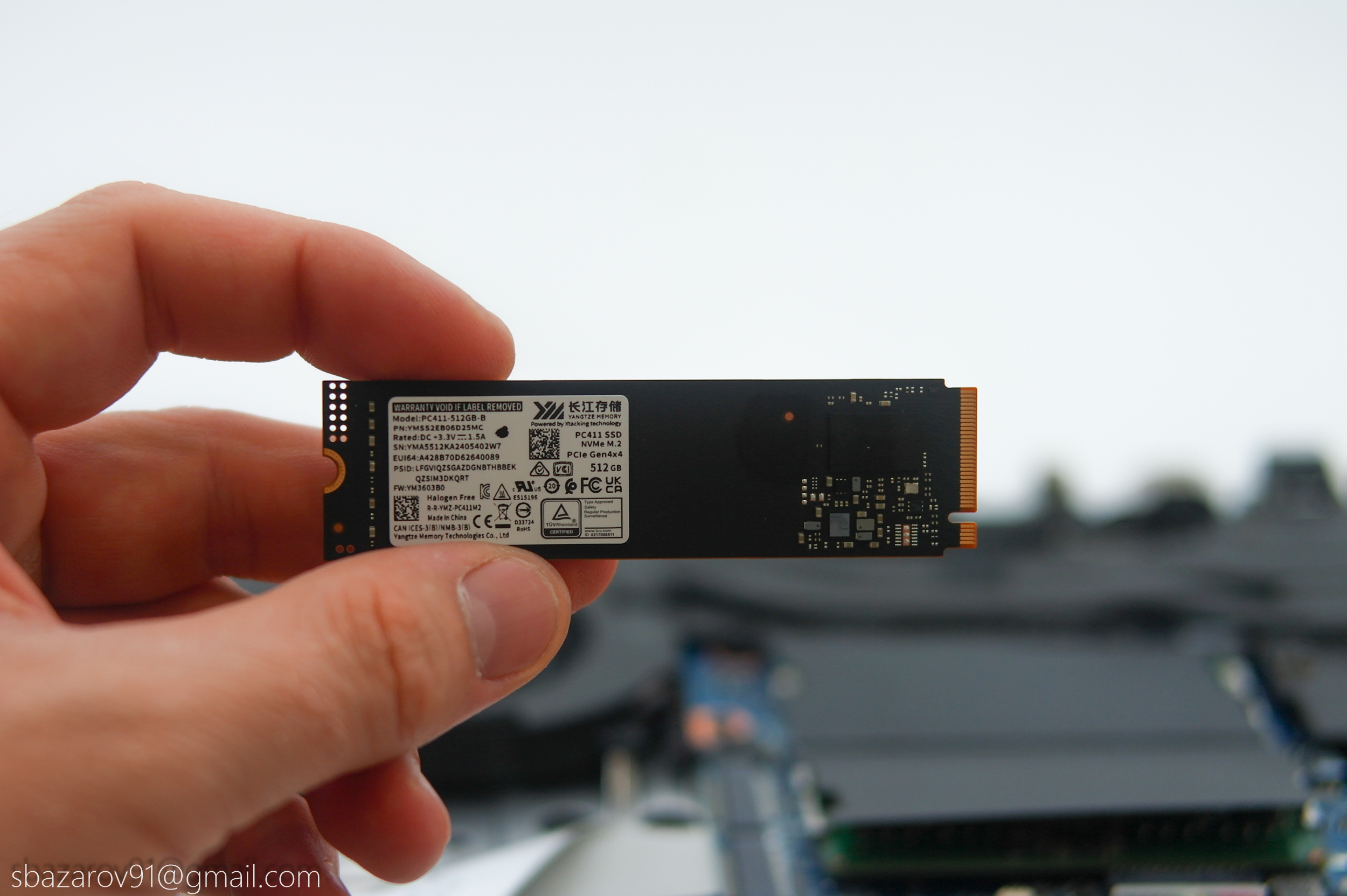 Основной накопитель — 512 ГБ NVMe (YANGTZE MEMORY PC411) для системы и программ.