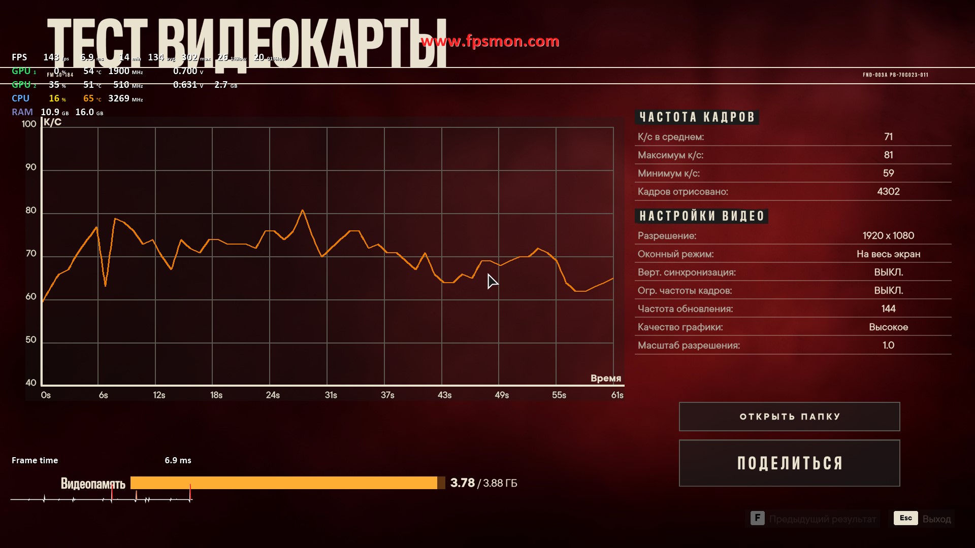 Настройки следующие: FHD разрешение, настройки высокие.