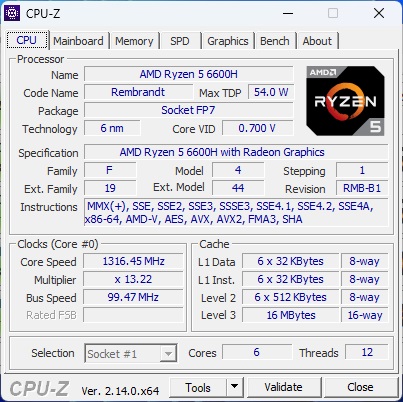 | Процессор | AMD Ryzen 5 6600H |