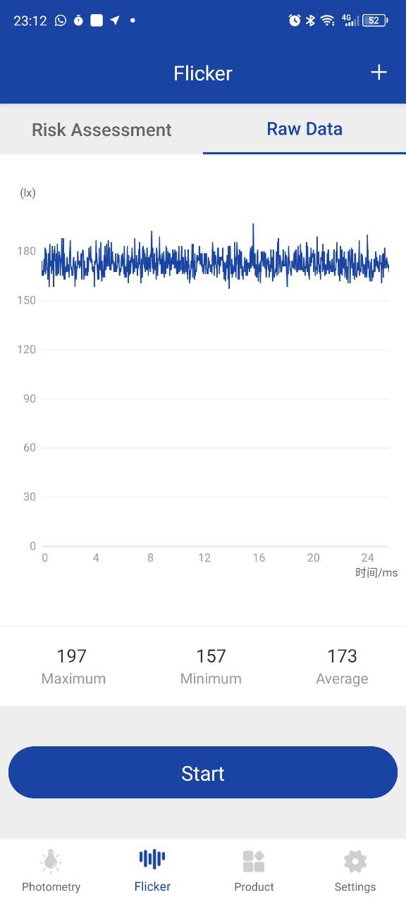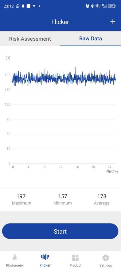 Сравним заявленную яркость, а также узнаем о цветовой температуре дисплея с помощью Oppo Light Meter. На максимальной яркости пиковое значение равняется 172 люкс, что является показателем ниже среднего. При этом цветовая температура ближе к холодному оттенку и до эталонного 6200К немного не дотянула. Пульсаций не замечено.