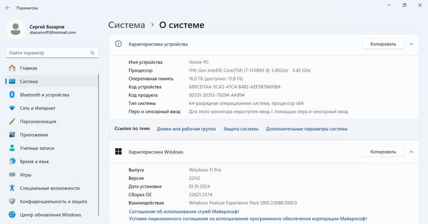 В качестве платформы выступает лицензированная русскоязычная операционная система Windows 11 Pro с версией 22H2 (в предыдущих ноутбуках Ninkear встречалась Single Language версия с предустановленным английским языком). После запуска системы и выполнения ряда настроек открывается доступ к двум накопителям: один на 930Gb, другой на 22.3Gb. Для чего нужен отдельный раздел «New Volume» не ясно, так как никаких файлов в нем не обнаружено.