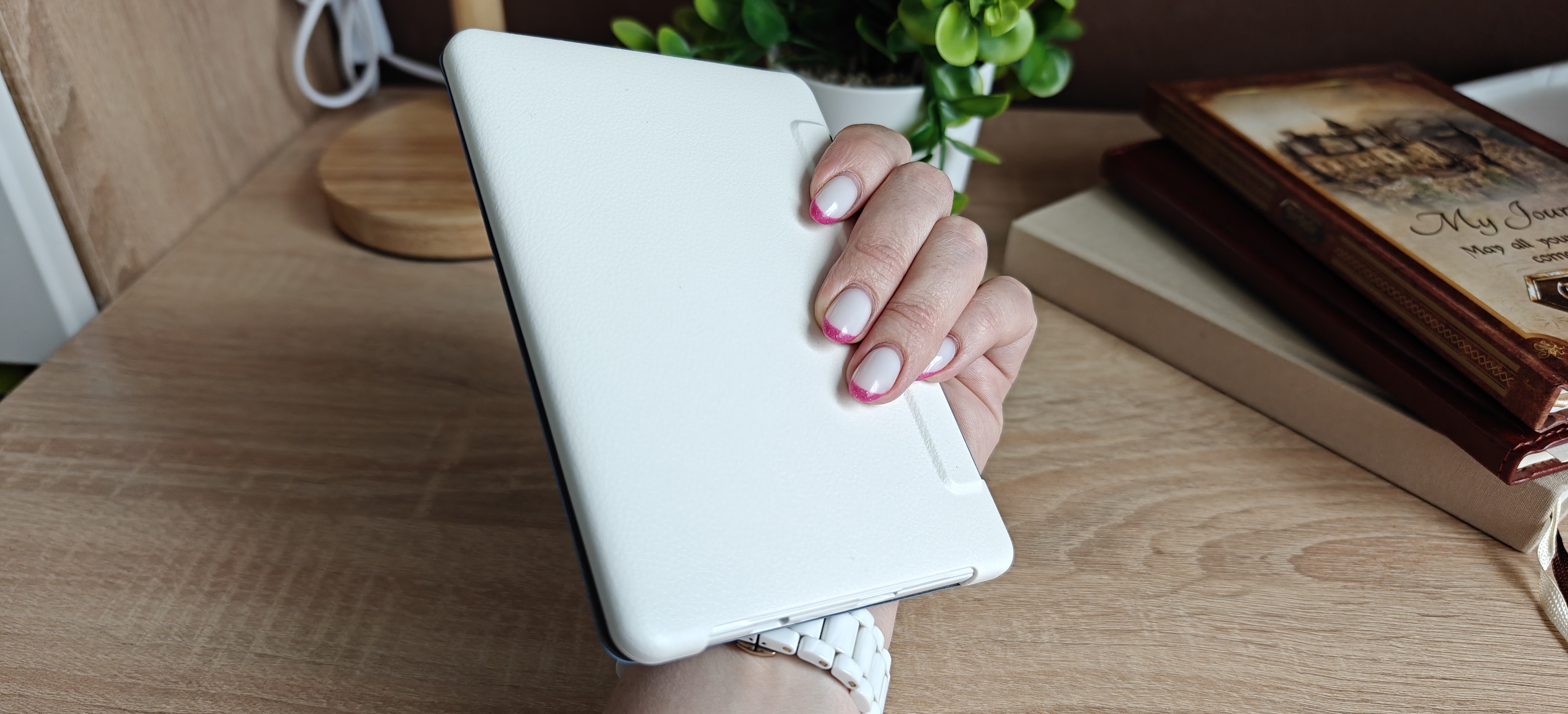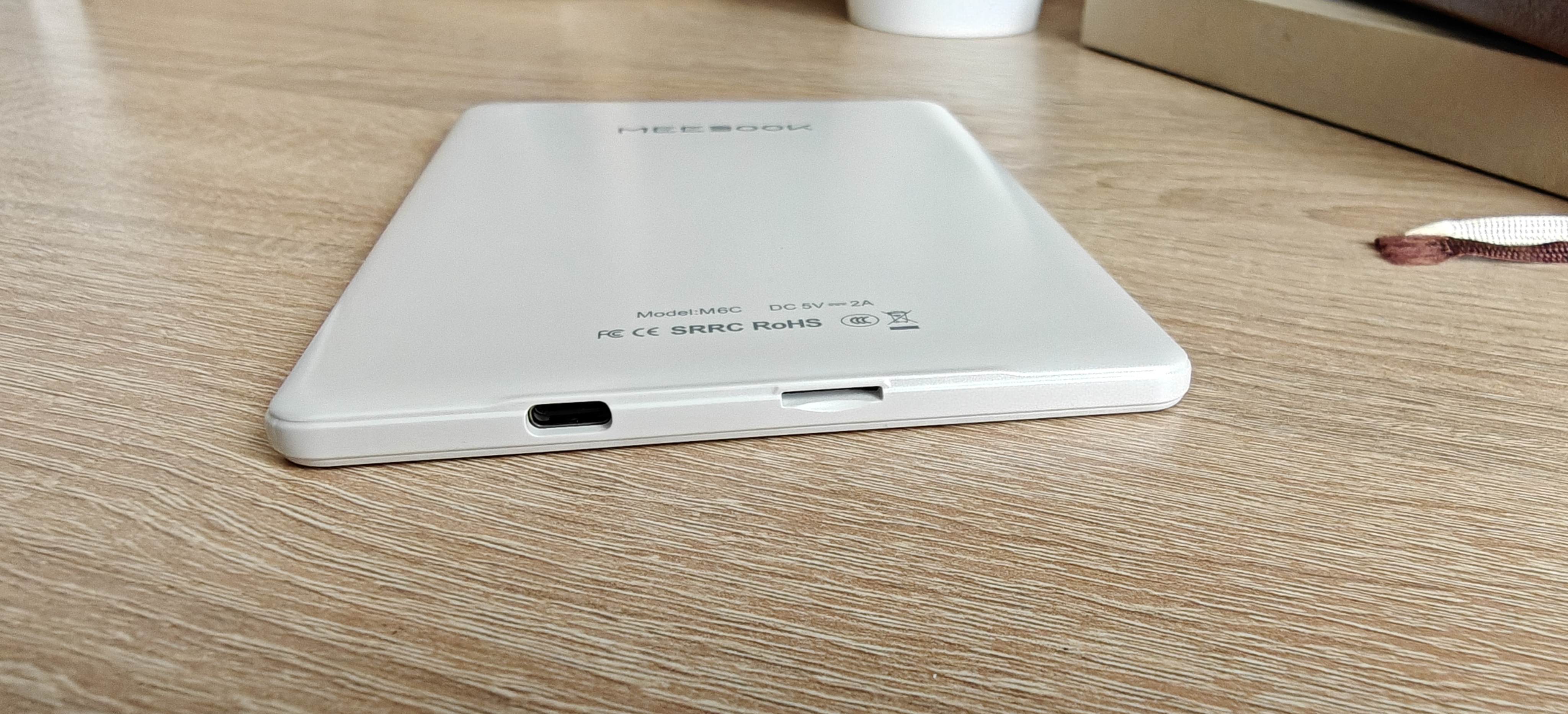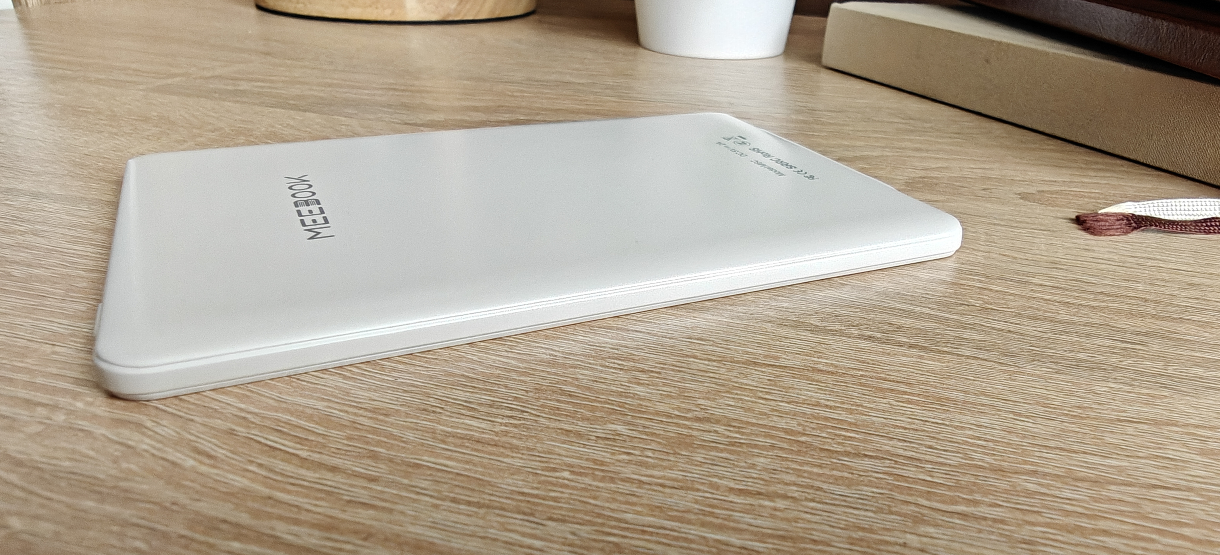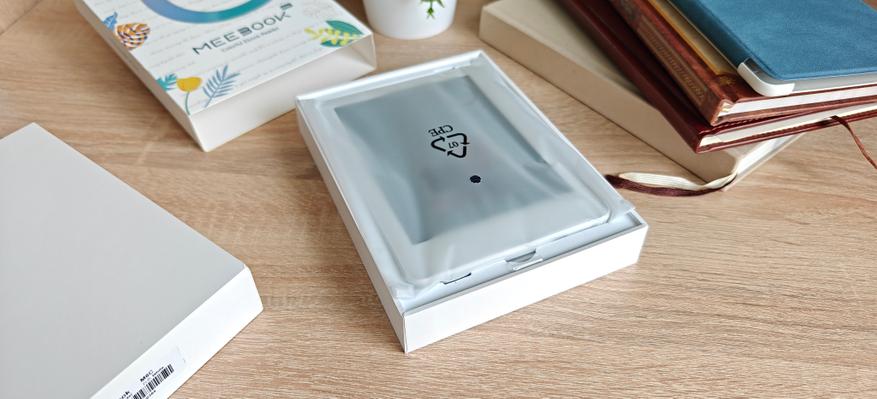 MEEBOOK M6C — это компактная, достаточно легкая и тактильно приятная электронная книга. Корпус устройства выполнен из белого пластика и имеет легкое перламутровое сияние на задней стороне, а спереди матовый белый пластик, визуально похожий на стекло.